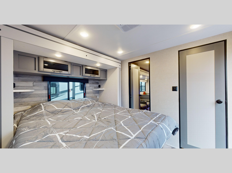 Each Volante is constructed with a fully enclosed and forced air heated underbelly that will extend your camping season, and you're going to love the sleek look of the fiberglass front cap. Power stabilizer jacks make setting up camp easier than ever, and there is a power awning with LED lights so you can relax under once everything is unloaded from the truck. Head inside to find stainless steel appliances, premium residential furniture, a cozy fireplace, and many more comforts of home.