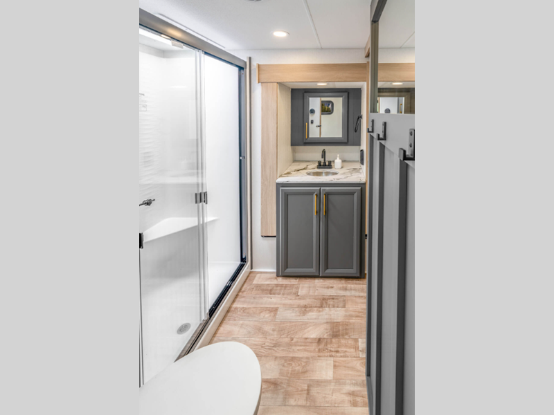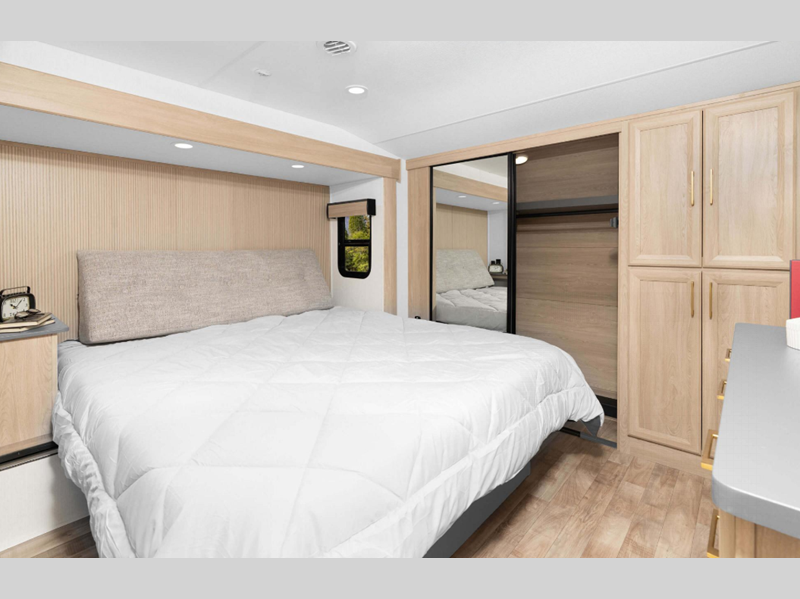 Sleeps 2 Slides 2 Length 31 ft Ext Width 8 ft Ext Height 12 ft 11 in Interior Color Mink Hitch Weight 1410 lbs GVWR 11500 lbs Dry Weight 8830 lbs Cargo Capacity 2670 lbs Fresh Water Capacity 76 gals Grey Water Capacity 50 gals Black Water Capacity 50 gals Tire Size 16" Furnace BTU 35000 btu Available Beds King Refrigerator Type French Door 12V Refrigerator Size 10 cu ft Cooktop Burners 3 Shower Size 42" x 30" Number of Awnings 1 Axle Weight 7420 lbs LP Tank Capacity 30 lbs Water Heater Type On Demand Tankless AC BTU 27000 btu TV Info LR 43" Smart LED TV Awning Info 16' Power w/LED Light Strip Axle Count 2 Washer/Dryer Available Yes Number of LP Tanks 2 Shower Type Shower w/Seat Electrical Service 50 amp Similar Floorplans
