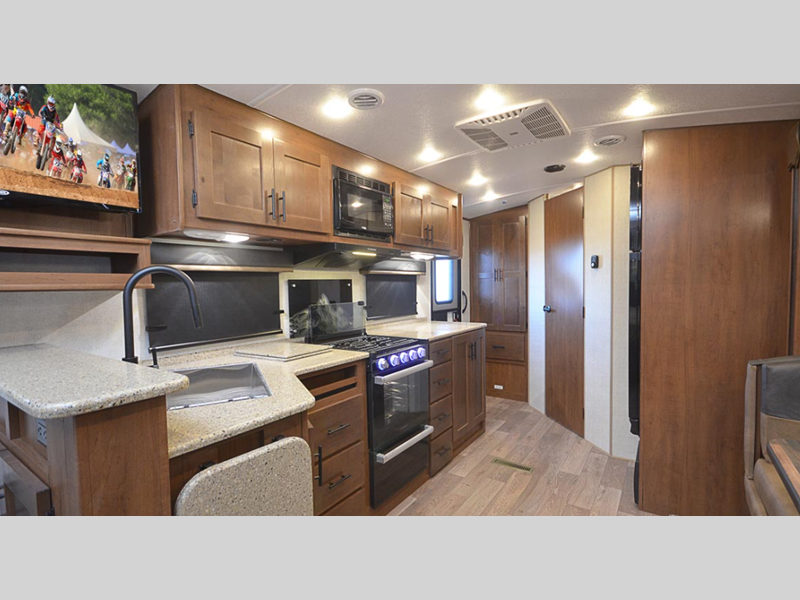Sleeps 5 Slides 1 Length 28 ft 8 in Ext Width 8 ft Ext Height 11 ft 7 in Int Height 6 ft 11 in Interior Color High Desert, Western Sunrise Hitch Weight 800 lbs GVWR 9995 lbs Dry Weight 6775 lbs Cargo Capacity 3220 lbs Fresh Water Capacity 80 gals Grey Water Capacity 80 gals Black Water Capacity 40 gals Tire Size ST235/80/16E Furnace BTU 35000 btu Available Beds Queen Refrigerator Type 12V Off Grid Refrigerator Size 10 cu ft Cooktop Burners 3 Number of Awnings 1 Axle Weight 5100 lbs LP Tank Capacity 30 lbs Water Heater Capacity 10 gal TV Info LR 32" Swing-Out TV Awning Info 20' Axle Count 2 Number of LP Tanks 2 Shower Type Tub/Shower Combo Similar Floorplans