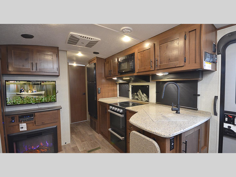 Sleeps 3 Slides 1 Length 28 ft 8 in Ext Width 8 ft Ext Height 11 ft 7 in Int Height 6 ft 11 in Interior Color High Desert, Western Sunrise Hitch Weight 850 lbs GVWR 9995 lbs Dry Weight 6775 lbs Cargo Capacity 3220 lbs Fresh Water Capacity 80 gals Grey Water Capacity 50 gals Black Water Capacity 40 gals Tire Size ST235/80/16E Furnace BTU 35000 btu Available Beds Queen Refrigerator Type 12V Off Grid Refrigerator Size 10 cu ft Cooktop Burners 3 Number of Awnings 1 Axle Weight 5100 lbs LP Tank Capacity 30 lbs Water Heater Capacity 10 gal TV Info LR 32" Swing-Out TV Awning Info 21' Axle Count 2 Number of LP Tanks 2 Shower Type Shower w/Seat Similar Floorplans