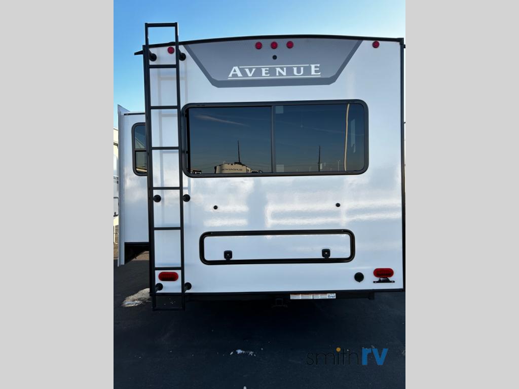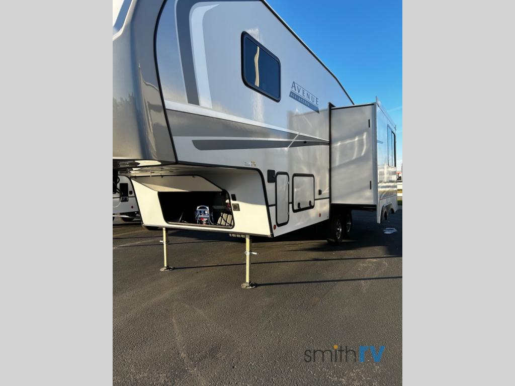 A benchmark chassis creates a space saver upper deck with each one of these Avenue All-Access fifth wheels by Alliance RV! The 101 in. wide-body construction gives you more room to walk around and the flush slide out floors throughout prevent any tripping. There are Azdel composite sidewalls inside and out, and a seamless fully walkable PVC roof for extreme durability and zero maintenance. You are sure to love the "no carpet zone" making each Avenue easy to clean and allergen free, not to mention pet friendly with vinyl flooring throughout. You can maximize your space throughout with innovative storage solutions like the hidden storage behind the TV, inside the end tables, ottoman, and dinette chairs. There are a few available options you might like to add to further customize your fifth wheel, like the optional second 13.5K A/C or the optional Solar Package for off-grid camping capabilities!
