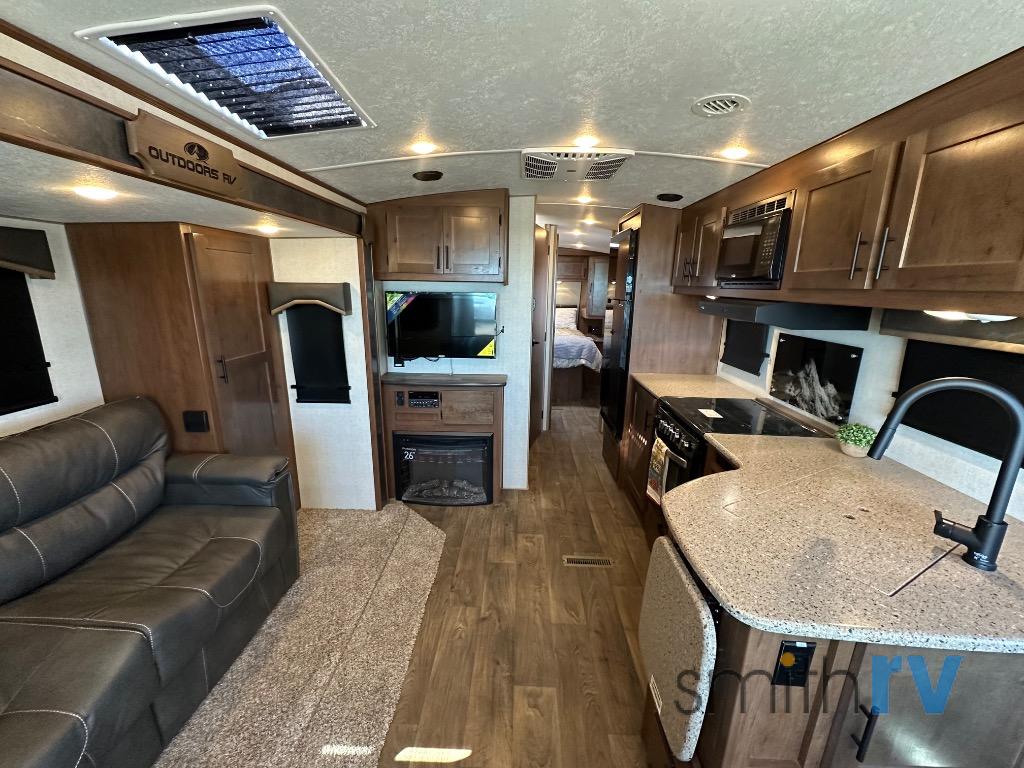 With any Black Stone Mountain Series travel trailer by Outdoors RV you will enjoy climate designed four seasons camping thanks to the thermal pane windows and the fully enclosed, heated, and insulated underbelly. The custom built chassis and rugged integrated A-frame are built for strength and durability, along with the rugged 2" bonded aluminum frame walls. Each model includes LG solid surface countertops, granite designed backsplash, vaulted radius ceilings, and a mountain comfort premium mattress for all-around comfort. You will also love the XL panoramic slide out windows and the dual pane living room skylight with a shade to let natural light in!