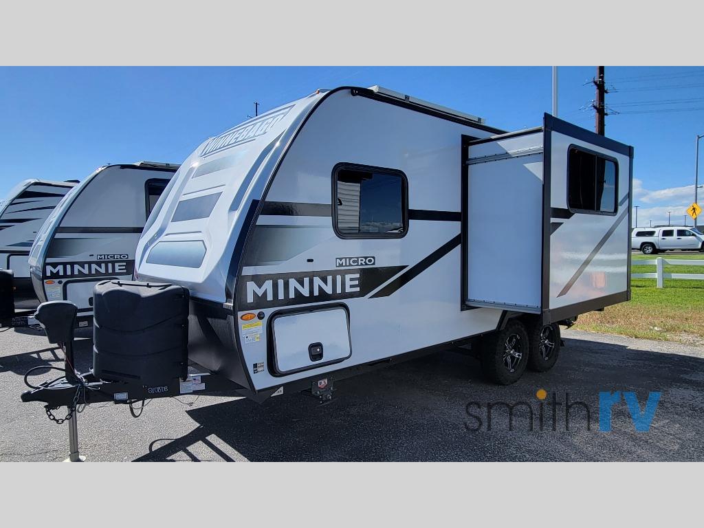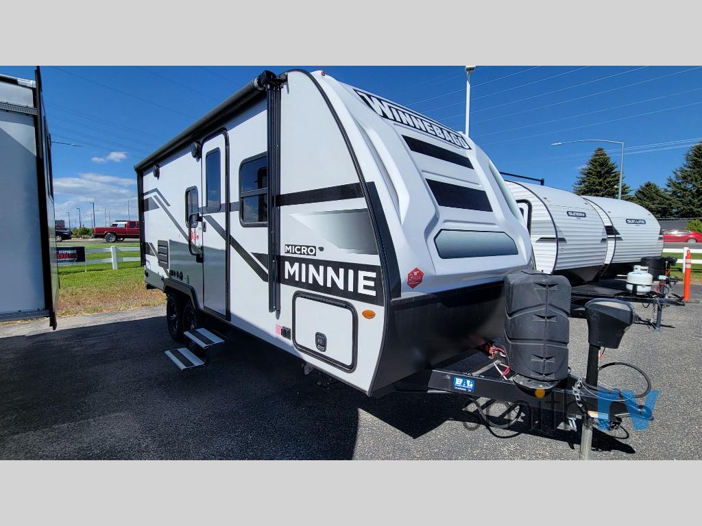 Start out on your boundless journey in one of these Winnebago Industries Towables Micro Minnie travel trailers! Towing is made simple with the 7' width to keep your Micro Minnie in your rear-view mirror. They don't lack in features either although they are compact in size. The spacious galley including a sink, refrigerator, a cooktop, and even a convection microwave oven allows you to cook without compromise. You will not only enjoy the entertainment found indoors with a Smart TV, a JBL premium sound system and Aura Cube high performance mechless media center, but outdoors you will also enjoy the JBL premium speakers and a power awning with LED lighting. Each model also comes with flexible exterior storage to make packing quick and easy, a 200-watt solar panel for off-grid camping, and Dexter TORFLEX torsion stub axles for smooth towing!