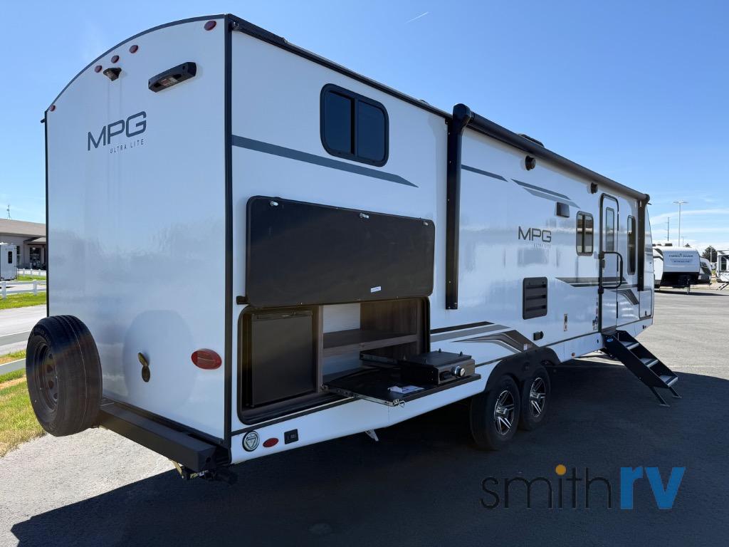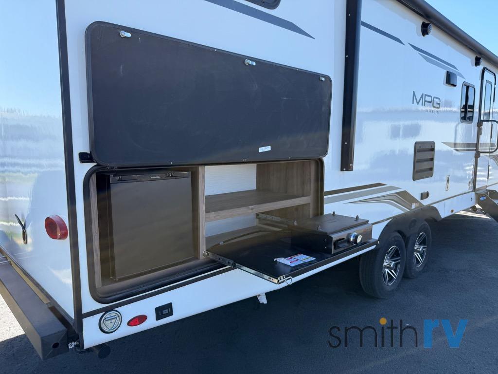 With any MPG travel trailer or toy hauler by Cruiser you will find a 6' 11" barrel roof, Azdel composite laminated walls, and a high gloss fiberglass front cap with LED lighting for a sleek look. There are seamless kitchen countertops and plywood flooring that will be easy to clean, plus residential hardwood cabinets with hidden hinges for a more at-home feel. The slam latch baggage doors with magnetic latches will make loading up easier than ever, plus the pass-through storage includes LED lights you are sure to appreciate. Each model also includes multiple charging stations with 12v and USB ports, a four speaker soundbar system to listen to your playlists, and a dual ducted A/C to keep you cool during those hot summer months!