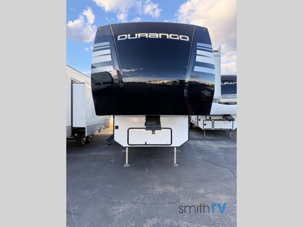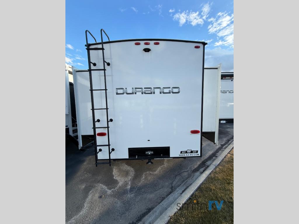 Enjoy full time living, an affordable price, and a wide body construction for more living space with every one of these KZ Durango light high-profile fifth wheels! These luxury units can be used all year round with the all-weather insulation package, the 3" x 14" foam-core in-floor straight-line heating system with a 35,000 BTU furnace, and the 15,000 BTU ducted roof A/C which optimizes the airflow by an average of 40% for better performance, cooling time, and reduction of noise. A few other construction features you will appreciate include a one piece, seamless walk-on Tufflex roofing material, Pex® in-floor heated waterlines, a Lamilux® gelcoat fiberglass exterior, and Dexter® axles with self adjusting brakes and height adjusting hangers. Inside, blancher cherry cabinetry, a king size bed, and smart TVs will have you feeling like you never left home!