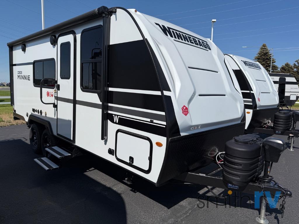 Start out on your boundless journey in one of these Winnebago Micro Minnie travel trailers! Towing is made simple with the 7' width to keep your Micro Minnie in your rear-view mirror. They don't lack in features either although they are compact in size. The spacious galley including a sink, refrigerator, a cooktop, and even a convection microwave oven allows you to cook without compromise. You will not only enjoy the entertainment found indoors with a Smart TV, a JBL premium sound system and Aura Cube high performance mechless media center, but outdoors you will also enjoy the JBL premium speakers and a power awning with LED lighting. Each model also comes with flexible exterior storage to make packing quick and easy, a 200-watt solar panel for off-grid camping, and Dexter TORFLEX torsion stub axles for smooth towing!