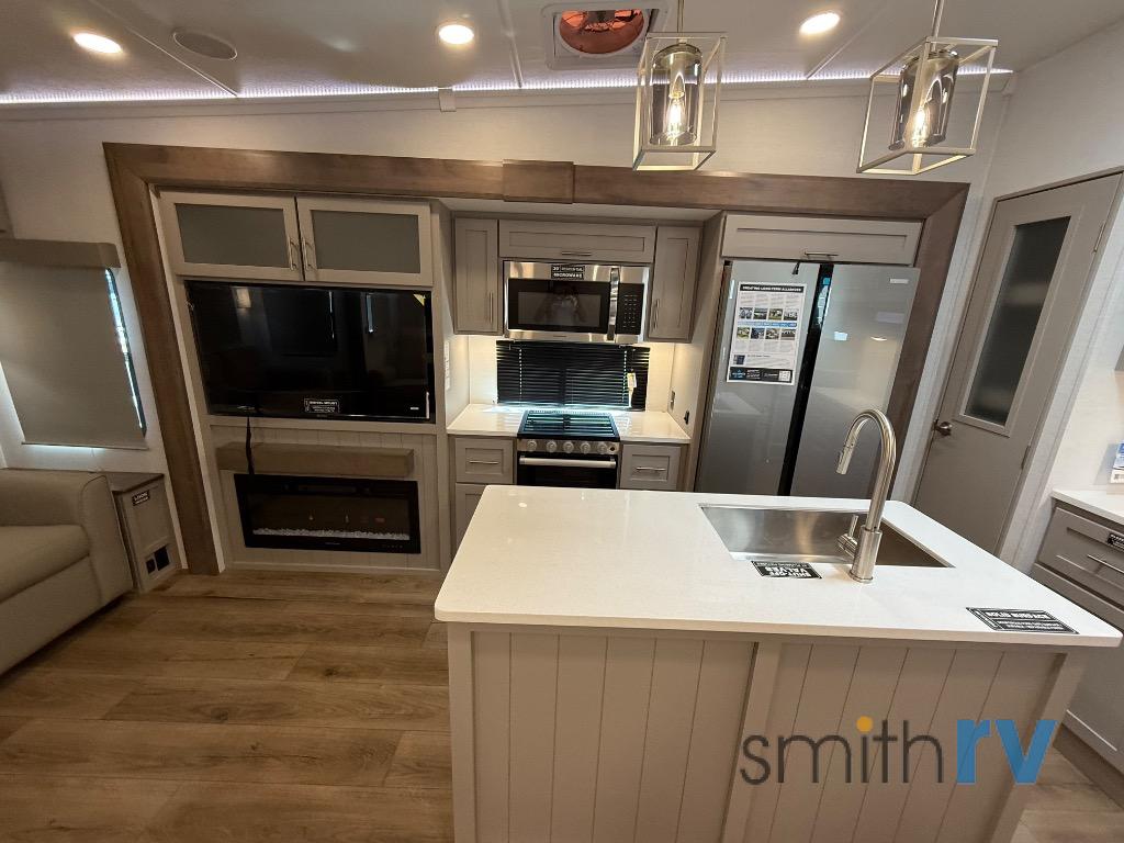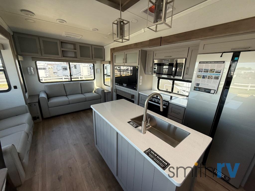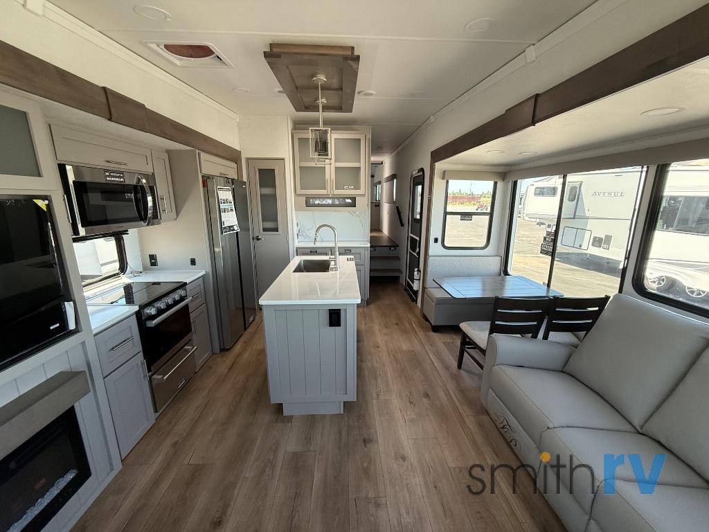 With any Avenue fifth wheel or travel trailer by Alliance RV, you will enjoy more interior space provided by the 8' 5" wide-body construction, and a long list of luxury features. Each is built with Azdel composite sidewalls both inside and out, along with a PVC roof for added strength. There are innovative storage solutions that include hidden storage behind the TV, within end tables and ottomans, and more. Since these units feature no carpet throughout, cleaning will be easier than ever, and there are flush floor slides throughout for seamless living spaces. The Avenue also comes with the OTG Solar Package with a 400 watt solar panel, inverter prep, multiple outlets, and more to keep you charged up!