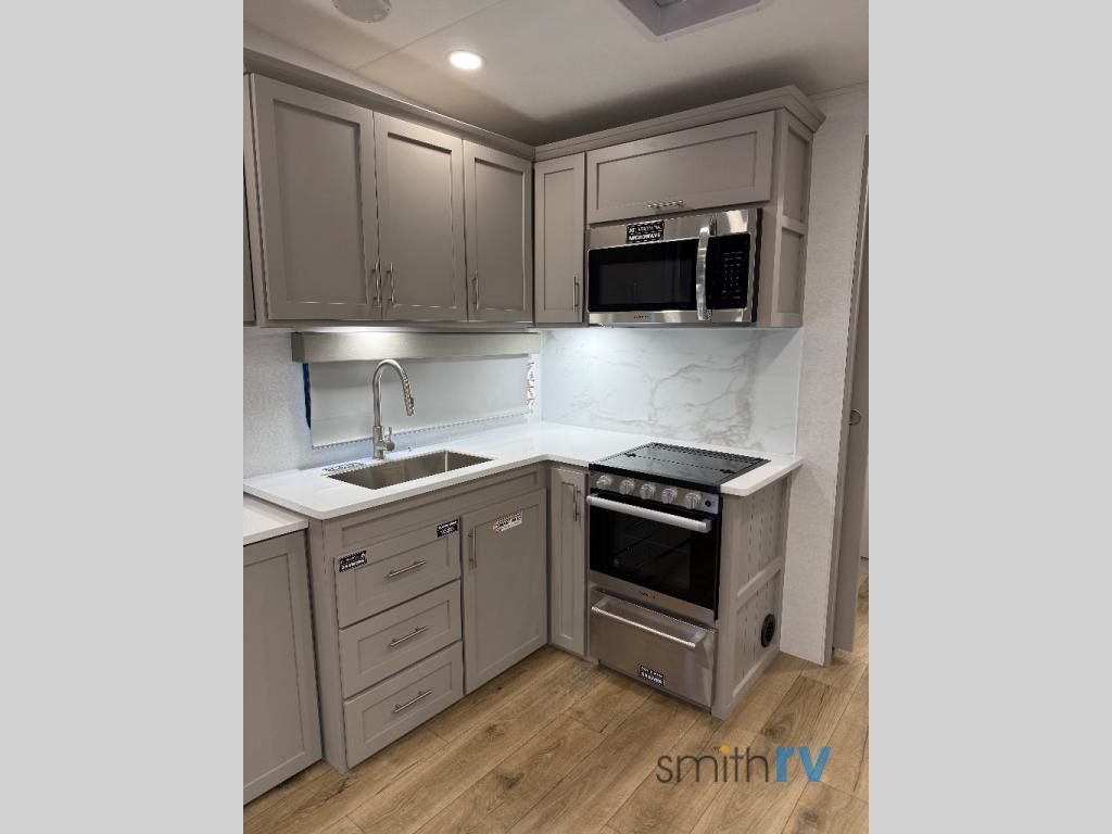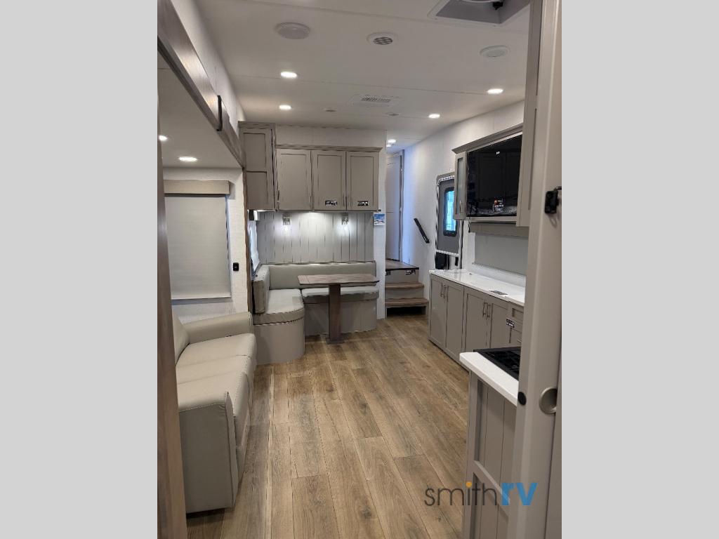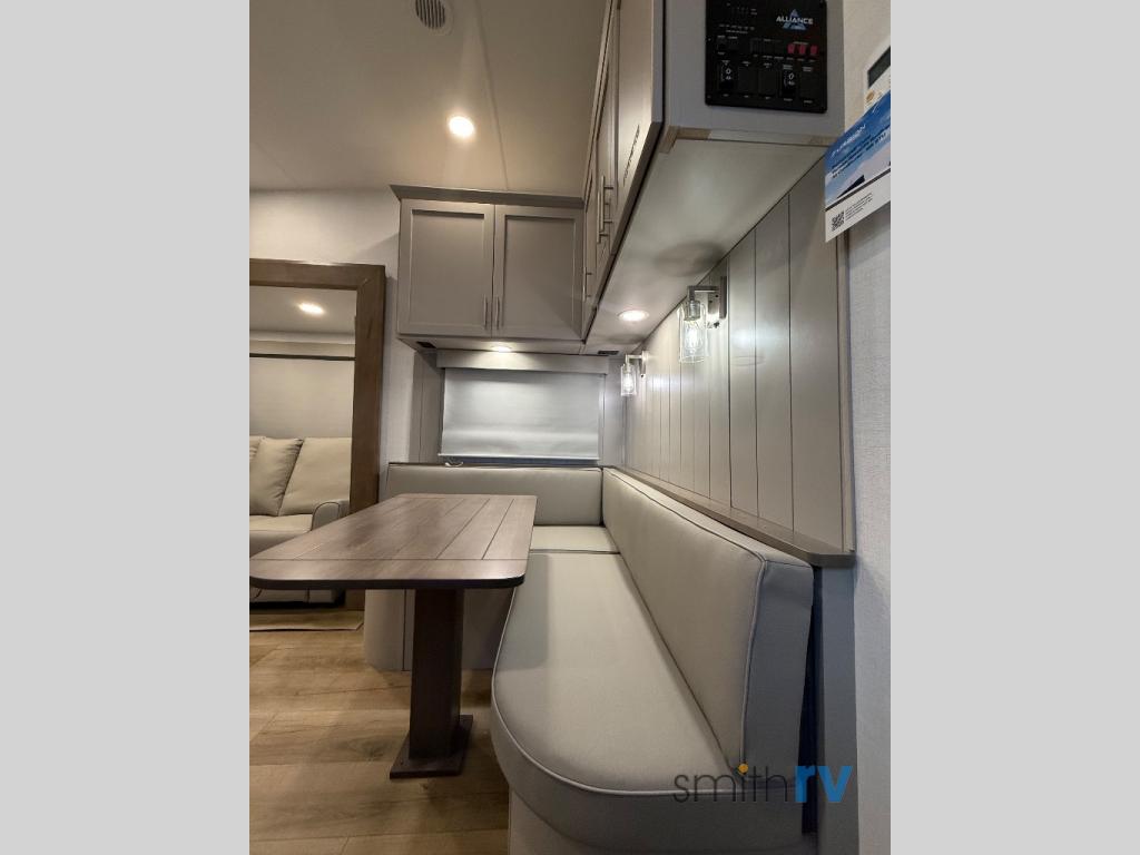 A benchmark chassis creates a space saver upper deck with each one of these Avenue All-Access fifth wheels by Alliance RV! The 101 in. wide-body construction gives you more room to walk around and the flush slide out floors throughout prevent any tripping. There are composite sidewalls inside and out, and PVC roof for extreme durability. You are sure to love no carpet throughout making each Avenue All-Access easy to clean and allergen free, not to mention pet friendly. You can maximize your space throughout with innovative storage solutions like the hidden storage behind the TV, inside the end tables, ottoman, and dinette chairs. These units also include the OTG Solar Package with a 200 watt solar panel, 15 amp MPPT charger, multiple outlets, and more to keep you powered up!
