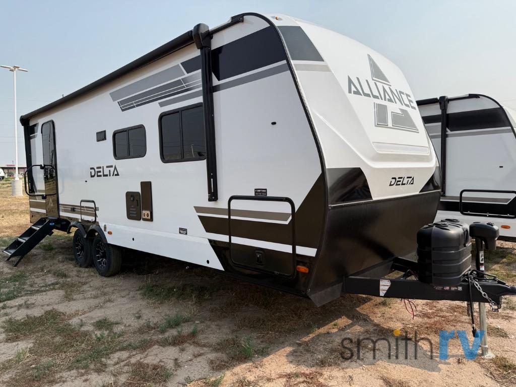 Form and function works together with every one of these Alliance RV Delta travel trailers! They are built with a walk-on roof with a seamless PVC roof covering, Mylar reinforced exterior seals, and a heated and enclosed underbelly to protect your unit in all seasons. The commercial grade vinyl flooring will be easy to clean and the oversized atrium windows throughout let in plenty of natural sunlight. With 62 cu. ft. of drop frame pass-through storage, you can bring along all of your essential camping gear plus it has USB charging for more convenience. There are many at home interior conveniences including a Bluetooth speaker, USB charging throughout, and even a pull-out kitchen trash can. Come find your favorite model today!