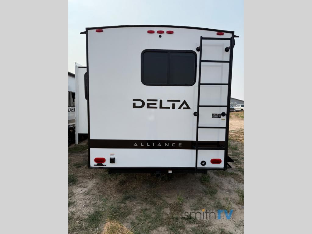 You will love all of your adventures with this Delta travel trailer in tow! This unit is perfect for a couple or even a family of four or six with a queen bed in the front private bedroom, and also using the sofa and U-shaped dinette once converted for more sleeping space. The U-shaped dinette is great for gathering for meals, a board game or game of cards, and the sofa is directly opposite a 40" HDTV which makes viewing enjoyable. You can easily prepare all of your favorite meals and snacks with the kitchen amenities provided inside. A three burner range allows you to easily cook indoors, or you can cook outside using the outdoor griddle/grill if you like. There is a 10 cu. ft. 12V refrigerator to keep all of your perishables and drinks nice and cold, plus a large sink for dishes and cleaning up, and a convenient pull-out trash can and flip-up counter extension as well. You will also appreciate the full rear bath featuring a 30" x 36" shower, toilet, vanity with sink, and linen cabinet for your towels and toiletries.