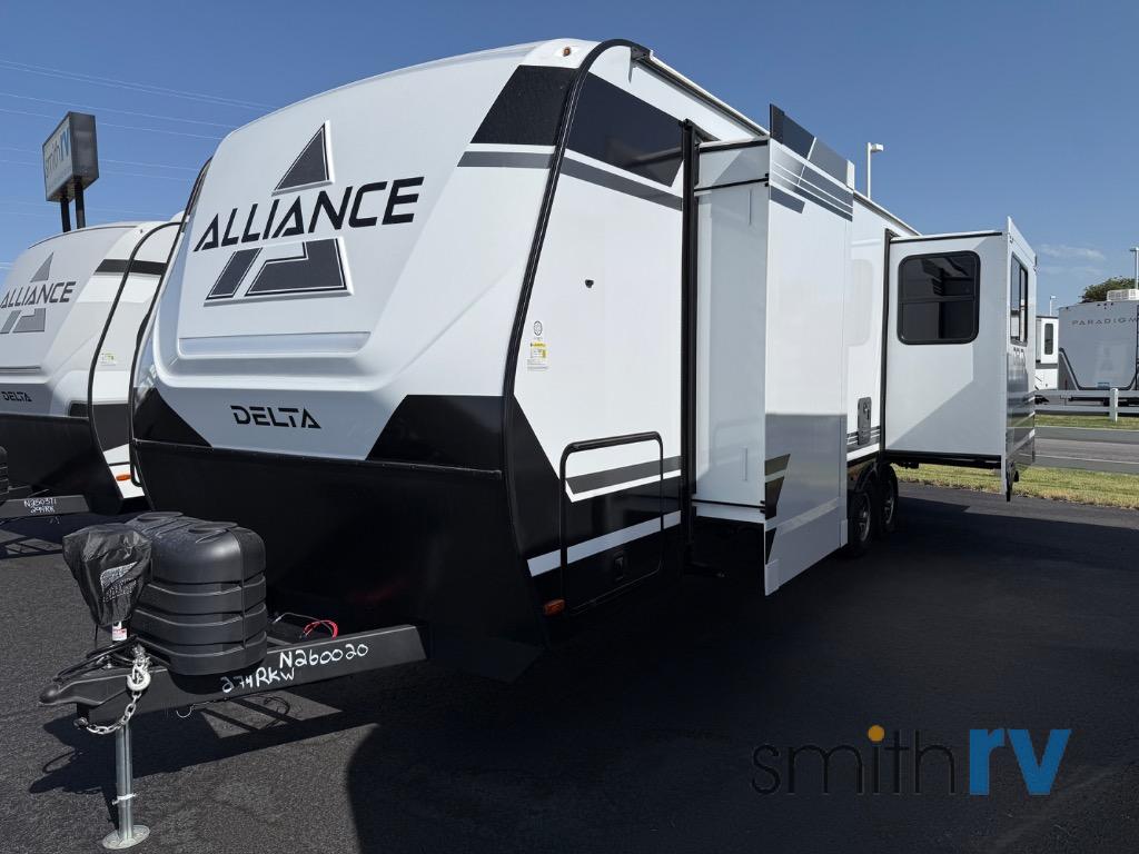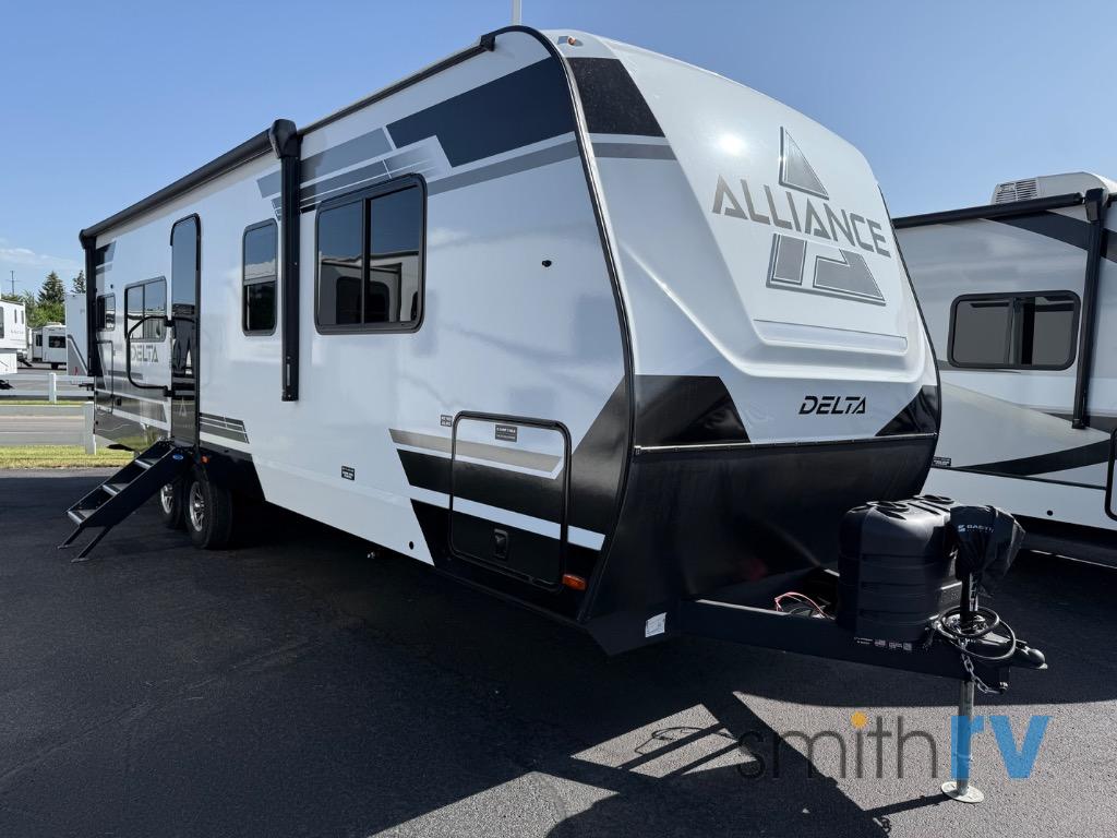 Form and function works together with every one of these Alliance RV Delta travel trailers! They are built with a walk-on roof with a seamless PVC roof covering, Mylar reinforced exterior seals, and a heated and enclosed underbelly to protect your unit in all seasons. The commercial grade vinyl flooring will be easy to clean and the oversized atrium windows throughout let in plenty of natural sunlight. With 62 cu. ft. of drop frame pass-through storage, you can bring along all of your essential camping gear plus it has USB charging for more convenience. There are many at home interior conveniences including a Bluetooth speaker, USB charging throughout, and even a pull-out kitchen trash can. Come find your favorite model today!