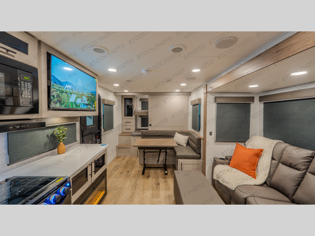 Form and function work together with every one of these Alliance RV Delta travel trailers! They are built with a walk-on roof with a seamless PVC roof covering, Mylar reinforced exterior seals, and a heated and enclosed underbelly to protect your unit. The commercial grade vinyl flooring will be easy to clean, and the oversized atrium windows throughout let in plenty of natural sunlight. With 62 cu. ft. of drop frame pass-through storage, you can bring along all of your essential camping gear plus it has USB charging for more convenience. There are many at home interior conveniences including a Bluetooth speaker, USB charging throughout, and even a pull-out kitchen trash can. Come find your favorite model today!