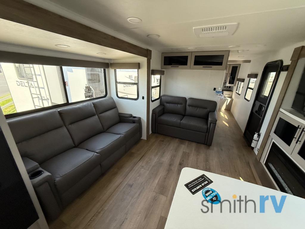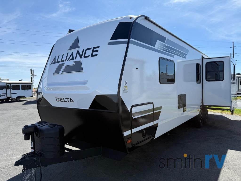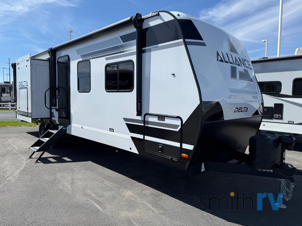 Form and function works together with every one of these Alliance RV Delta travel trailers! They are built with a walk-on roof with a seamless PVC roof covering, Mylar reinforced exterior seals, and a heated and enclosed underbelly to protect your unit in all seasons. The commercial grade vinyl flooring will be easy to clean and the oversized atrium windows throughout let in plenty of natural sunlight. With 62 cu. ft. of drop frame pass-through storage, you can bring along all of your essential camping gear plus it has USB charging for more convenience. There are many at home interior conveniences including a Bluetooth speaker, USB charging throughout, and even a pull-out kitchen trash can. Come find your favorite model today!
