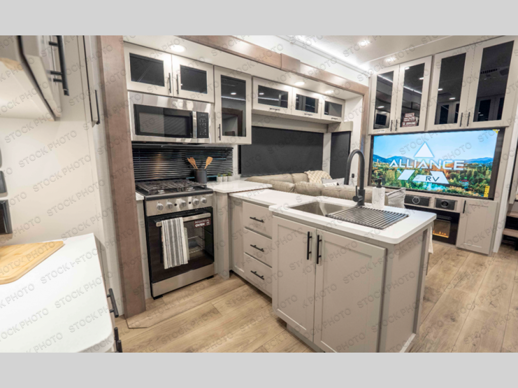 You can bring your toys with you wherever you go with any one of these Alliance RV Valor toy hauler fifth wheels! They are adventure-ready with a quality build from the walk on roof with seamless PVC roof covering to the commercial grade vinyl flooring and MorRyde CRE3000 suspension system. The Performance Running Gear package comes with a 101" wide-body benchmark chassis platform, Dexter axles, and a space enhancing drop frame storage compartment to pack in all your riding gear. You can even go off-gridding thanks to the Off the Grid Pack that has two 400-watt solar panels, generator prep, a 60-amp charge controller, and a 100-amp hour lithium iron phosphate battery. Some of the interior comforts you will enjoy are the hardwood cabinet doors and drawers, solid surface kitchen countertops, and commercial grade vinyl flooring with no carpet to make clean up a breeze. The Valor toy haulers are also the Masters of 12 Volt with USB charging station throughout, a 12V refrigerator, and more 12-volt features to make camping hassle-free!