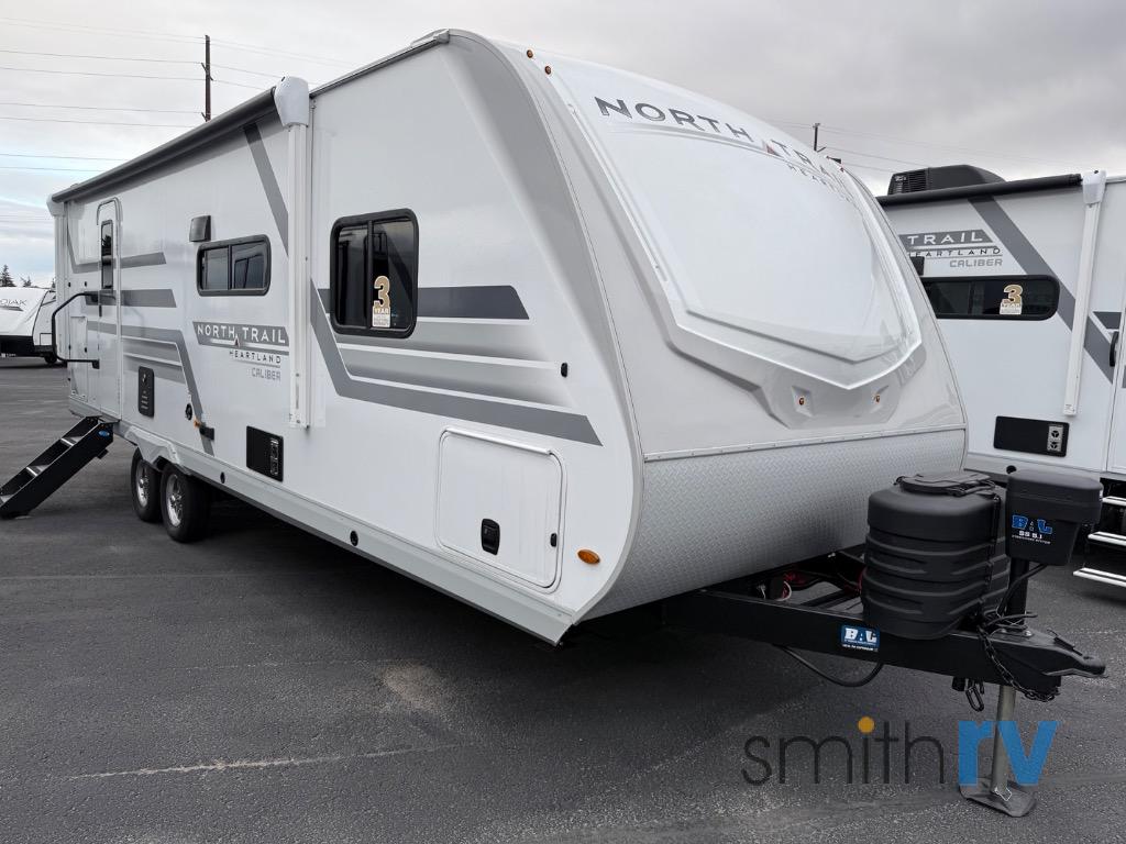 Built for comfort, durability, and modern convenience, these Heartland North Trail travel trailers offer everything you need for a premium camping experience. Each model features a strong American-made Norco Z-frame with an aerodynamic front profile and front diamond plating for added protection. The exclusive TrusstXL Roof System and CoreShield vacuum-bonded walls with Azdel provide superior insulation. Inside, enjoy residential comforts like seamless countertops, solid hardwood maple cabinet doors, LED lighting throughout, and 60 x 80 in. queen beds or 60 x 76 in. Murphy beds. Tech-ready features include an LED smart TV, USB ports, TPMS monitoring, and a 200W solar panel with 30 AMP digital controller. With a Quiet Series A/C, on-demand 60K BTU water heater, with these trailers you are equipped to make every trip comfortable and adventure-ready.