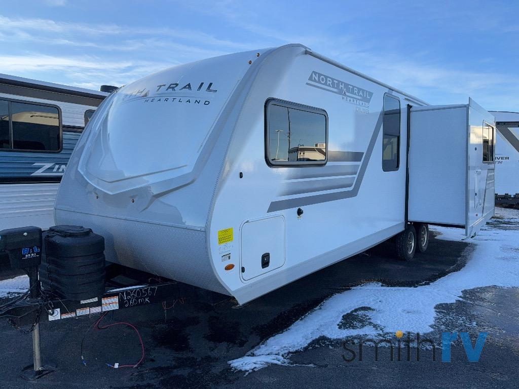 Built for comfort, durability, and modern convenience, these Heartland North Trail travel trailers offer everything you need for a premium camping experience. Each model features a strong American-made Norco Z-frame with an aerodynamic front profile and front diamond plating for added protection. The exclusive TrusstXL Roof System and CoreShield vacuum-bonded walls with Azdel provide superior insulation. Inside, enjoy residential comforts like seamless countertops, solid hardwood maple cabinet doors, LED lighting throughout, and 60 x 80 in. queen beds or 60 x 76 in. Murphy beds. Tech-ready features include an LED smart TV, USB ports, TPMS monitoring, and a 200W solar panel with 30 AMP digital controller. With a Quiet Series A/C, on-demand 60K BTU water heater, with these trailers you are equipped to make every trip comfortable and adventure-ready.