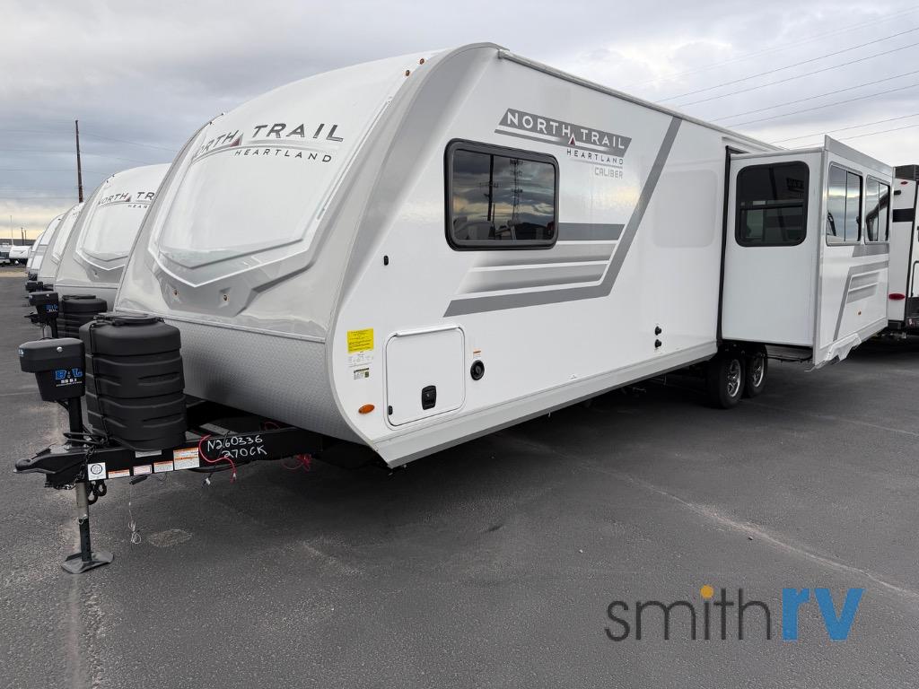 Built for comfort, durability, and modern convenience, these Heartland North Trail travel trailers offer everything you need for a premium camping experience. Each model features a strong American-made Norco Z-frame with an aerodynamic front profile and front diamond plating for added protection. The exclusive TrusstXL Roof System and CoreShield vacuum-bonded walls with Azdel provide superior insulation. Inside, enjoy residential comforts like seamless countertops, solid hardwood maple cabinet doors, LED lighting throughout, and 60 x 80 in. queen beds or 60 x 76 in. Murphy beds. Tech-ready features include an LED smart TV, USB ports, TPMS monitoring, and a 200W solar panel with 30 AMP digital controller. With a Quiet Series A/C, on-demand 60K BTU water heater, with these trailers you are equipped to make every trip comfortable and adventure-ready.