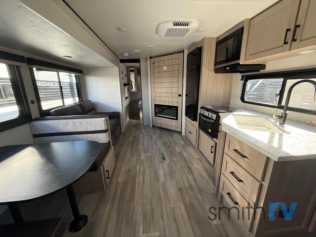 With any Prowler travel trailer, you will enjoy convenient amenities and at-home comforts wherever you decide to camp! Each one is built with a durable fully integrated A-frame, a TrussXL roof system, and galvanized wheel wells. And the self-adjusting brakes, easy-lube axles and nitrogen filled radial tires will provide smooth towing. Inside, you'll enjoy vinyl flooring throughout that will be easy to keep clean, durable, residential-inspired kitchen countertops, a residential-style high-rise kitchen faucet, and solid hardwood cabinet doors with hidden hinges and screwed stile construction. The mandatory Camping in Comfort Package includes a large folding entry door grab handle, MORryde Step Above entry steps, an on-demand tankless water heater, and stylish window shades. There are also available options that vary between single and double axle units that will allow you to customize your Prowler to fit your needs!