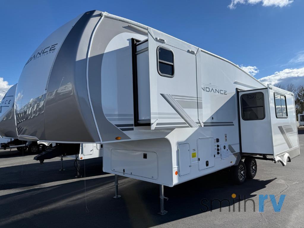 Each Heartland Sundance Fifth Wheel features ThermaShield, a zero-degree tested weather protection system that ensures comfort. This system features a fully enclosed and heated underbelly (ducted) that protects vital systems and provides warmth in cold climates. The AeroChill directional cooling system offers precise temperature control, creating a refreshing and comfortable atmosphere. Inside, you can stay connected on the go with the multiple USB-C 12V charging ports, and the Winegard Air 360 4G + Antenna & router prep that ensures reliable internet connectivity and seamless streaming. The units boast 5/8 in. tongue-and-groove plywood flooring, providing a sturdy and durable foundation, a Keyed-Alike lock system, and the rainproof bathroom power vent ensures a comfortable bathroom experience, removing moisture and odors efficiently.