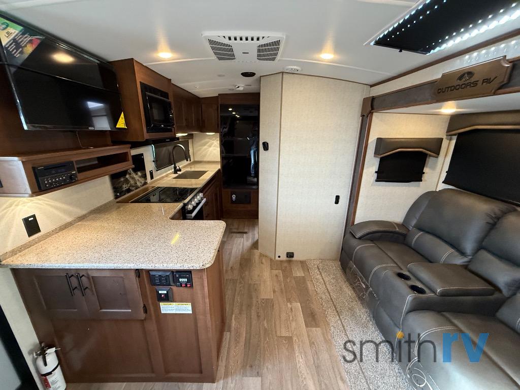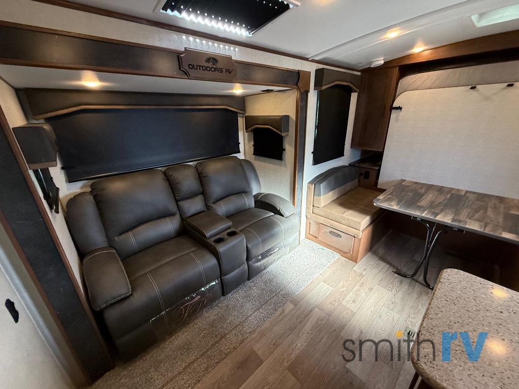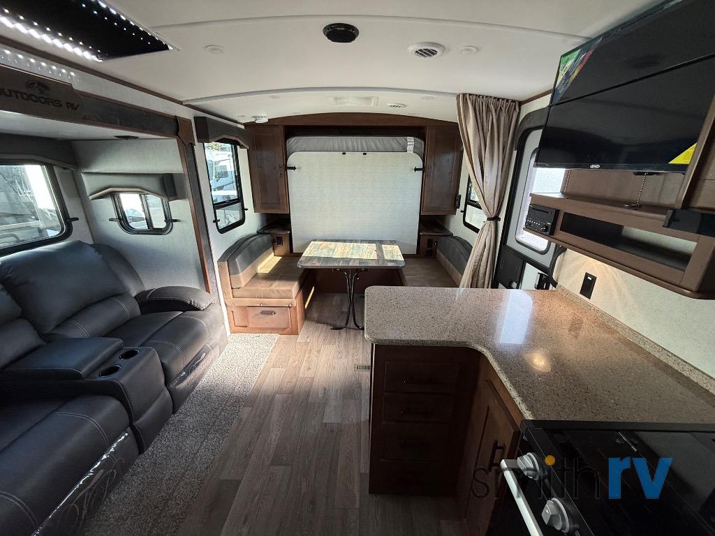 Each Creek Side Mountain Series travel trailer by Outdoors RV is designed for mountain tough four seasons camping for all your adventures. You'll find mountain extreme thermal pane windows, triple layered four seasons roof insulation, and a unique heated, insulated holding tank design. The compact design is compatible for light duty tow vehicles and smaller campsites, so you may not even need to purchase a new vehicle to start camping. Each model includes LG solid surface countertops, ultra leather furniture, and XL panoramic slide out windows for great outdoor views. These travel trailers also feature a mountain comfort premium mattress, 12V USB ports on either side of the bed, and drawers under the bed for convenient storage.