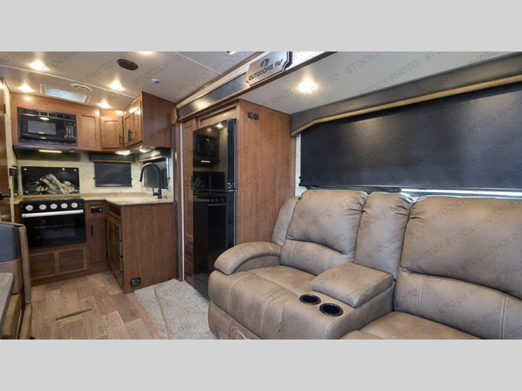 With any Timber Ridge Mountain Series travel trailer by Outdoors RV you will enjoy climate designed four seasons camping thanks to the thermal pane windows, XL furnace, plus unique heated and insulated holding tank design. The custom built chassis and rugged integrated A-frame are built for strength and durability, along with the rugged 2" bonded aluminum frame walls. Each model includes LG solid surface countertops, granite designed backsplash, vaulted radius ceilings, and a mountain comfort premium mattress for all-around comfort. You will also love the XL panoramic slide out windows and the dual pane living room skylight with a shade to let natural light in!