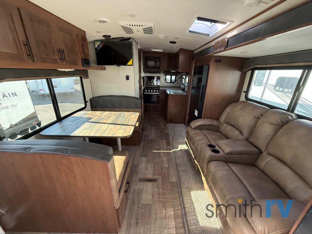 This is the perfect trailer for camping trips to the lake or your favorite campground. You will find a rear corner kitchen with plenty of counter space, and a mountain dinette to dine at. There is also a residential sofa with built-in recliners within the large slide out, along with the 12V refrigerator and pantry for food storage. Up front, the 60" x 80" queen bed is sure to provide a great night's rest, and you'll find storage space on either side of the bed for your clothes, shoes and more!