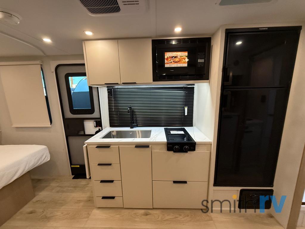 Start out on your boundless journey in one of these Winnebago Micro Minnie travel trailers! Towing is made simple with the 7' width to keep your Micro Minnie in your rear-view mirror. They don't lack in features either although they are compact in size. The spacious galley including a sink, refrigerator, a cooktop, and even a convection microwave oven allows you to cook without compromise. You will not only enjoy the entertainment found indoors with a Smart TV, a JBL premium sound system and Aura Cube high performance mechless media center, but outdoors you will also enjoy the JBL premium speakers and a power awning with LED lighting. Each model also comes with flexible exterior storage to make packing quick and easy, a 200-watt solar panel for off-grid camping, and Dexter TORFLEX torsion stub axles for smooth towing!