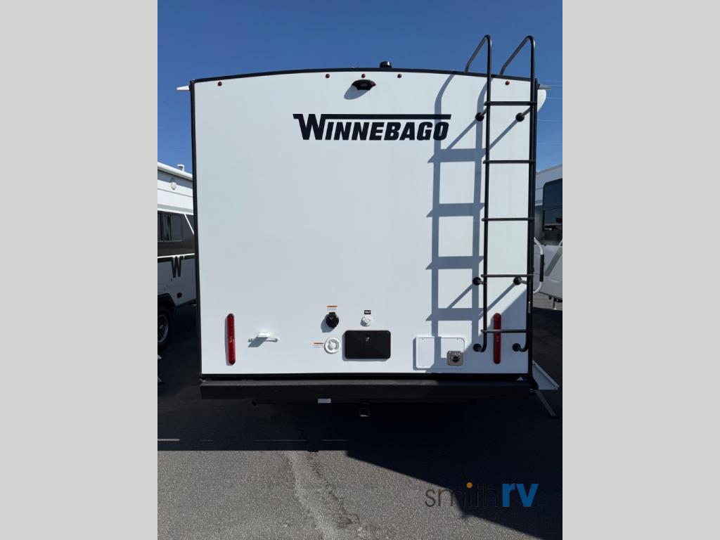 With any Thrive travel trailer by Winnebago, you can camp with functionality, comfort, and convenience! The tinted and frameless front window will be the first thing that catches your eye, and the fiberglass sidewalls with Azdel Onboard provide a durable trailer made to last. There is also an exterior ladder, along with front radius profile lights, power stabilizer jacks, and a powered awning with LED lighting to name a few exterior features. You will stay powered up by the 30-amp power cord and 200-watt solar panel, plus there is a tankless water heater for endless hot showers. Inside, you'll love the custom Winnebago furniture, carpetless side outs, molded fiberglass countertops, and residential recessed ceiling lights to keep your space well lit!