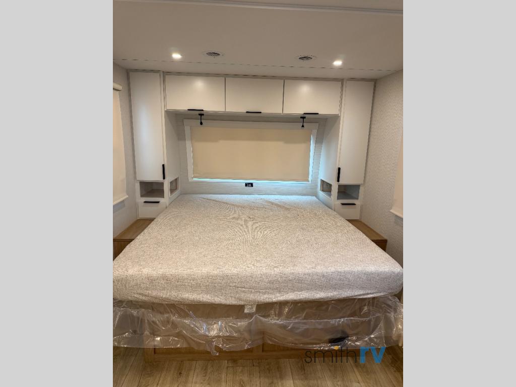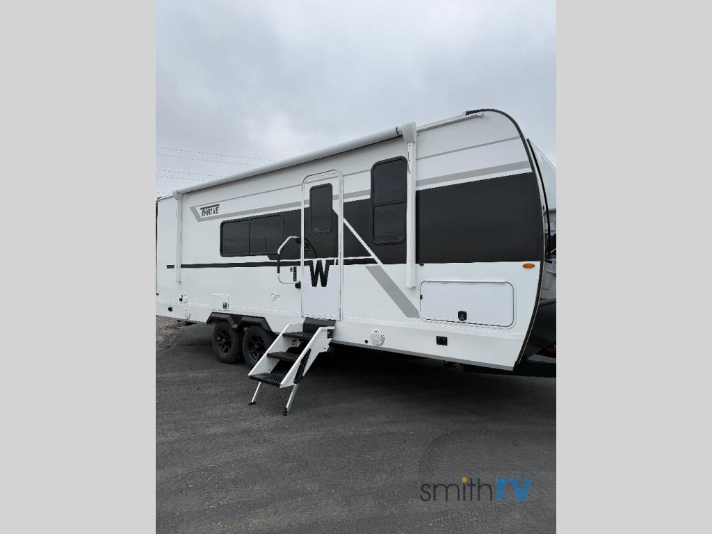 With any Thrive travel trailer by Winnebago, you can camp with functionality, comfort, and convenience! The large front viewing window with strike guard will be the first thing that catches your eye, and the fiberglass sidewalls with Azdel Onboard provide a durable trailer made to last. There is also an exterior ladder, along with front radius profile lights, power stabilizer jacks, and a powered awning with LED lighting to name a few exterior features. You will stay powered up by the 30-amp power cord and 200-watt solar panel, plus there is a tankless water heater for endless hot showers. Inside, you'll love the custom Winnebago furniture, carpetless side outs, molded fiberglass countertops, and residential recessed ceiling lights to keep your space well lit!