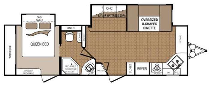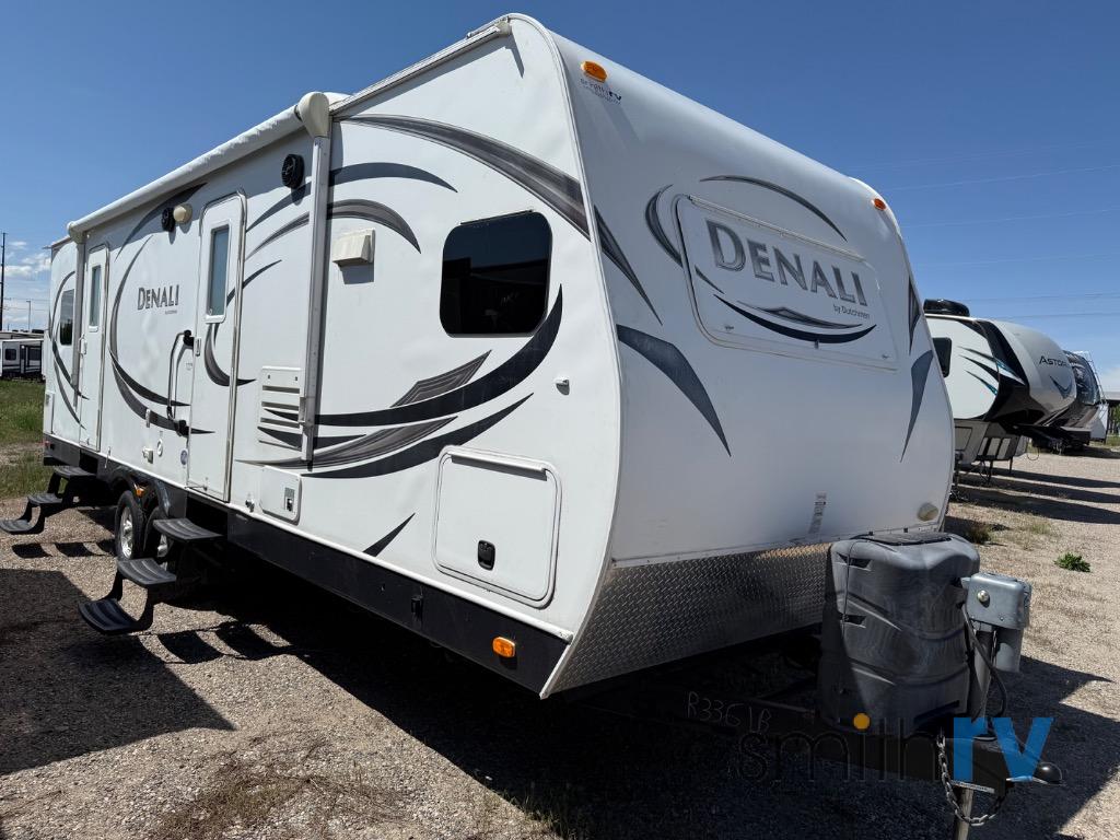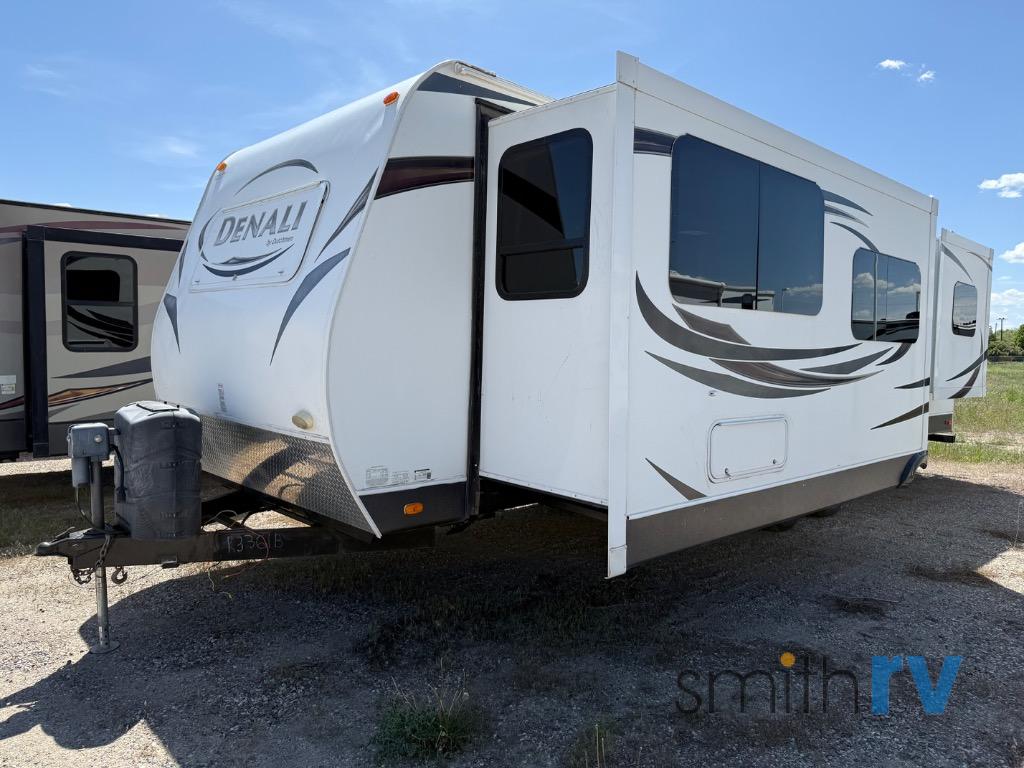 Double Slide Dutchmen Denali Travel Trailer w/Rear Queen Bed Slide w/Overhead Cabinet & Shelf, Wardrobe w/Sliding Closet Doors, Dresser w/Shelf, Private Bedroom Entry, Walk-Thru Bath w/Neo-Angle Shower, Sink, Toilet w/Linen Cabinet, Storage, Ent. Center, Corner Pantry, Air Mattress Sofa & Oversized U-Dinette Slide, Front Kitchen Including: Closet, Refrigerator, 3 Burner Range w/Microwave, Dbl. Kitchen Sink w/Shelf Above, Storage and Much More!