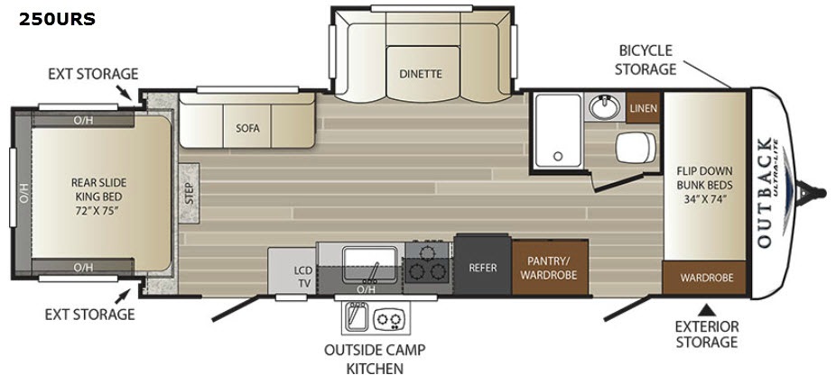Let this Outback Ultra Lite 250URS travel trailer be your home away from home! This Keystone model has dual entry, a rear king bed slide, u-dinette slide, and a set of front bunk beds as well as an outdoor kitchen!