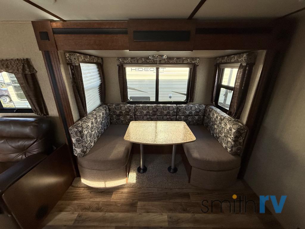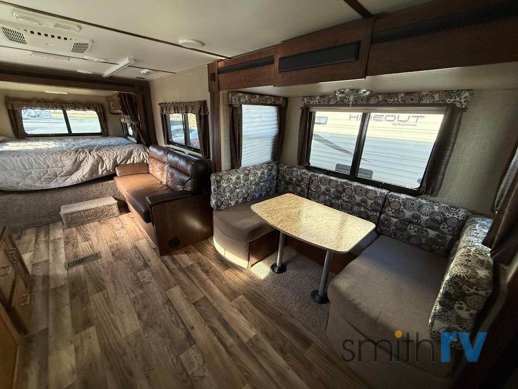 Enjoy meals around the u-dinette slide, and at night the dinette easily converts into additional sleeping space. There is also a sofa located next to the slide.