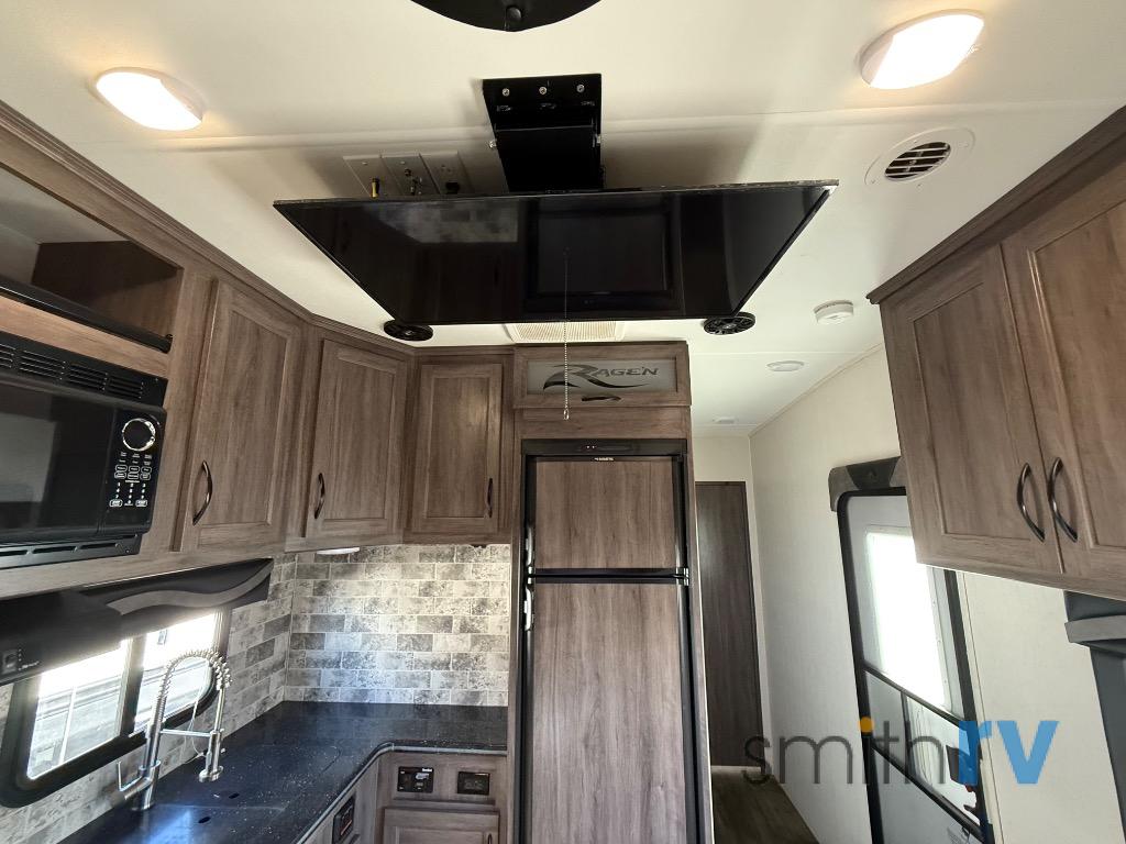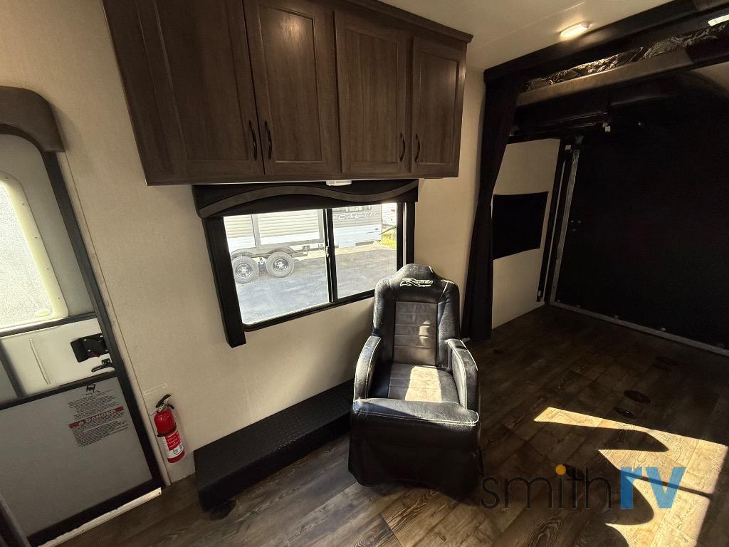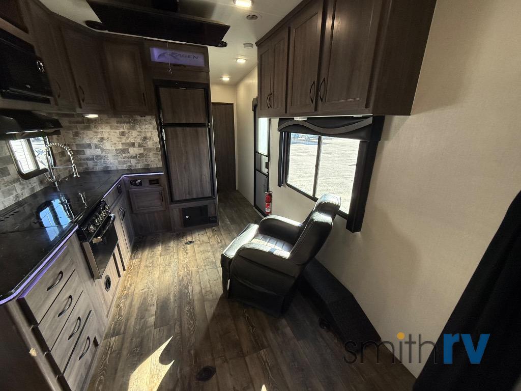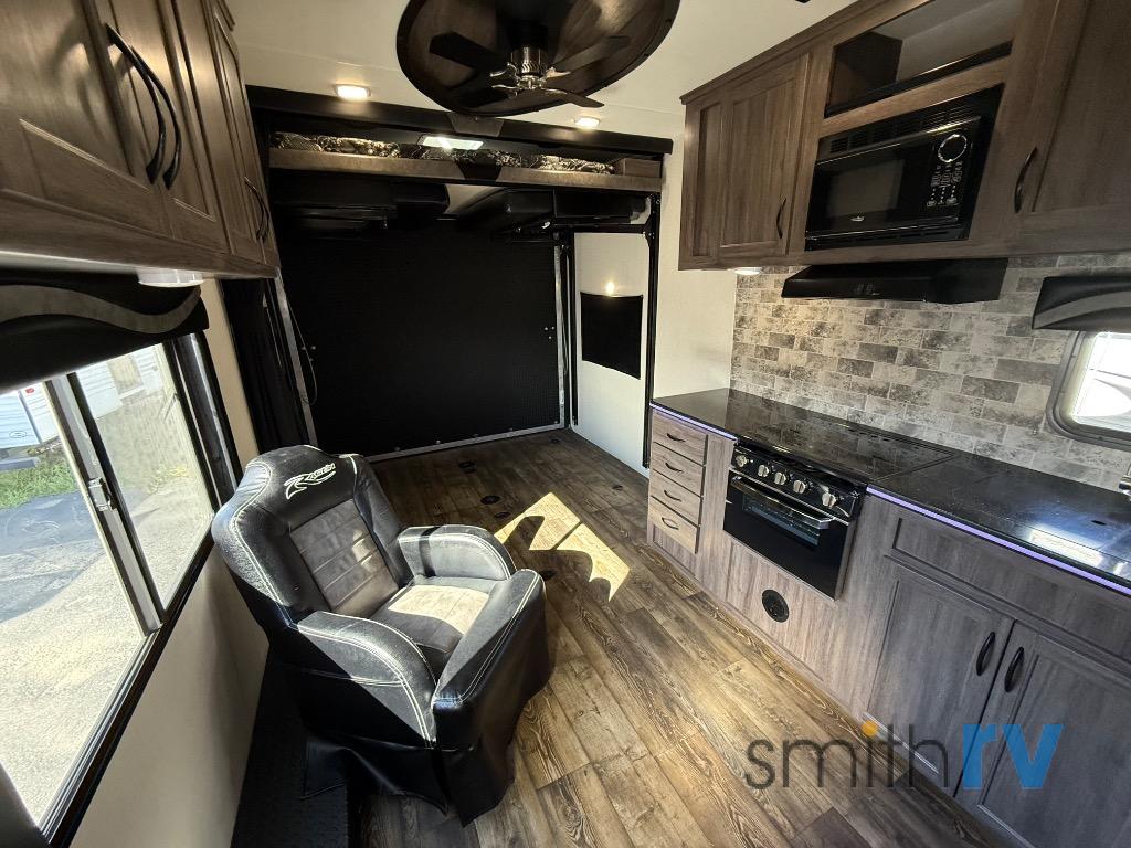 Take a trip in this Rage'n toy hauler and you will never want to travel in another RV again. The interior is kept bright and cheerful because of the LED lighting that has been installed throughout, and the kitchen will be one of your favorite places to spend your time because of the three-burner range top and 6 cubic foot refrigerator that will help your meal preparations go smoothly. Since this unit can sleep six people, you can invite your friends to join you on your upcoming adventures.