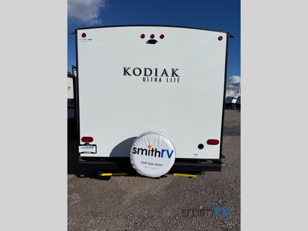 Your family will be excited about all the amenities included in this Kodiak Ultra-Lite travel trailer including a fireplace for those chilly camp nights, a large hidden pantry for those long camping trips, and theater seats for indoor relaxation. The hinged entertainment center allows everyone to have a good view of the TV if you decided to add one. The bath wardrobe allows you to store your guest's clothing, and the U-shaped dinette provides extra sleeping space when you aren't playing games or dining. Come see what else makes this the perfect RV for you!