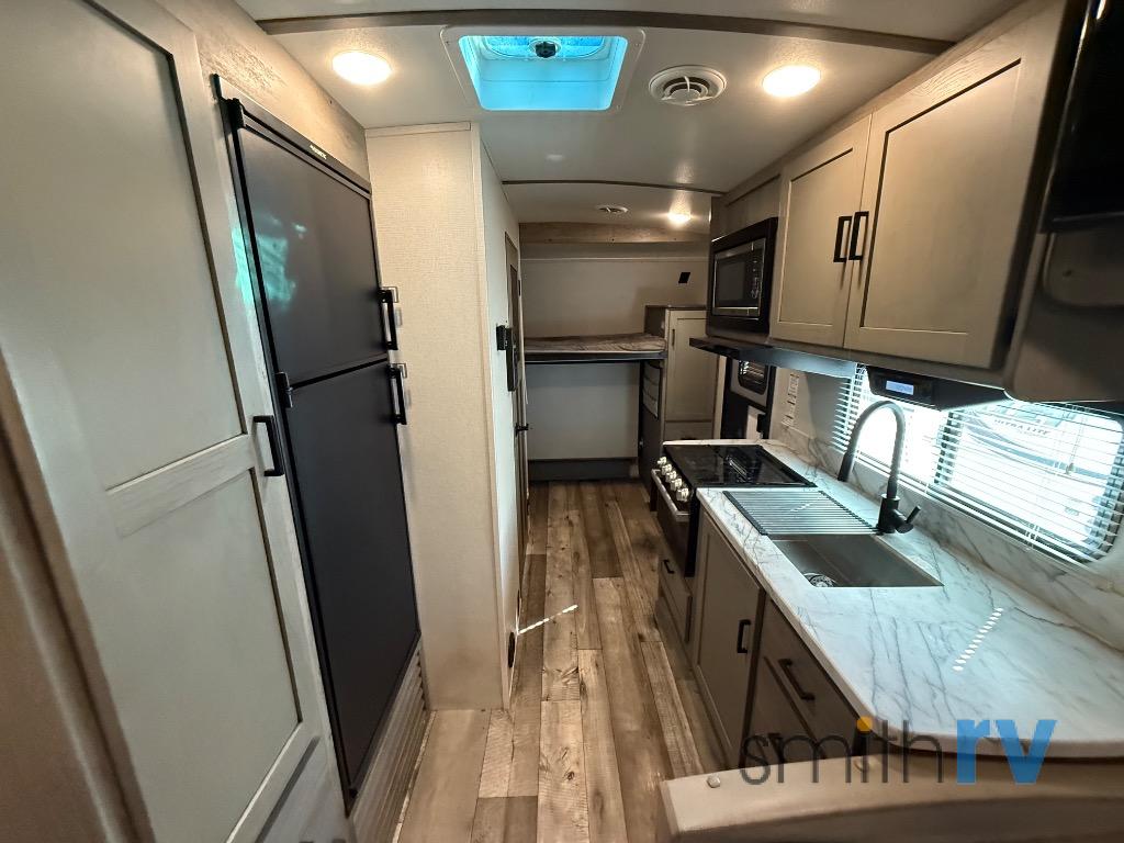 With any Keystone Outback Ultra Lite travel trailer or toy hauler, you will enjoy a beautiful interior that is outfitted with modern style. Some models feature interior sliding barn doors, and all models have extra-tall slide height for more head space. You can extend your camping season thanks to the one-piece polypropylene heated, enclosed underbelly, the 15K BTU A/C with true Race Track ducting, and the upgraded 10-cubic foot 12V gas/electric refrigerator. Some other notable features are the fully walkable 3/8" roof decking and one-piece TPO membrane, the HyperDeck flooring, and the outside shower. These are just a few of the reasons you will want to own an Outback Ultra Lite to explore the outdoors!