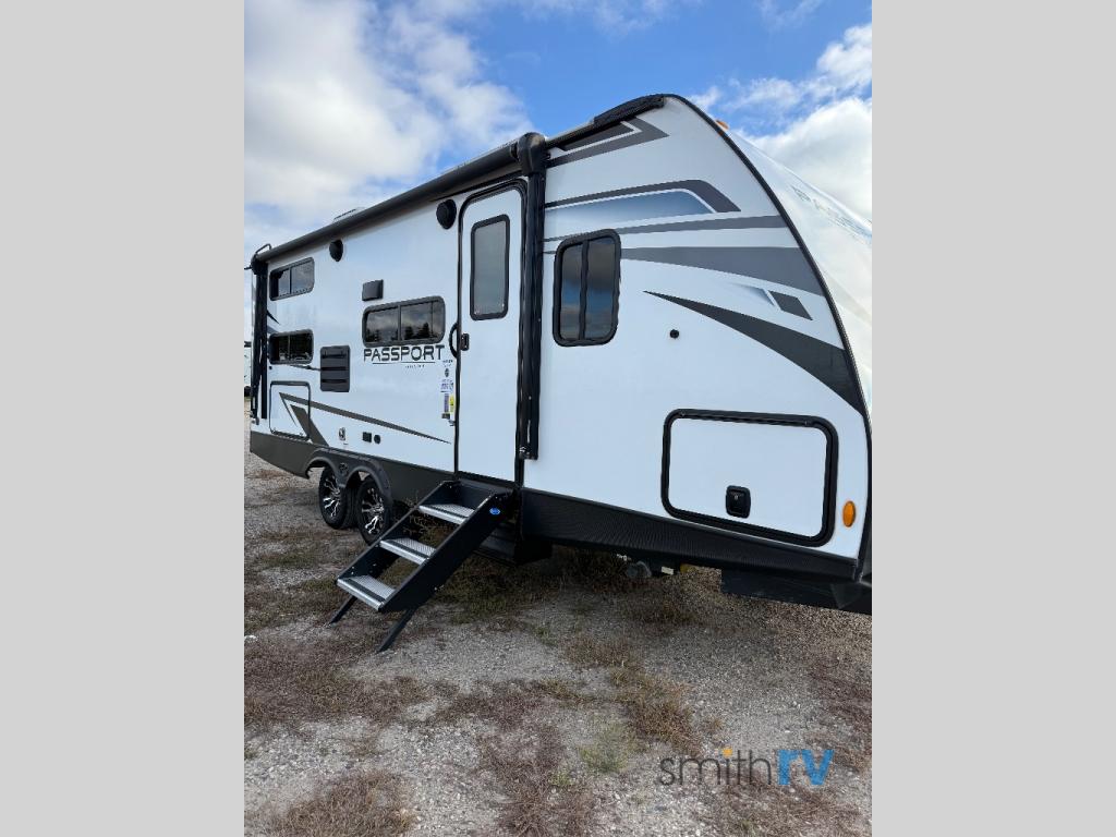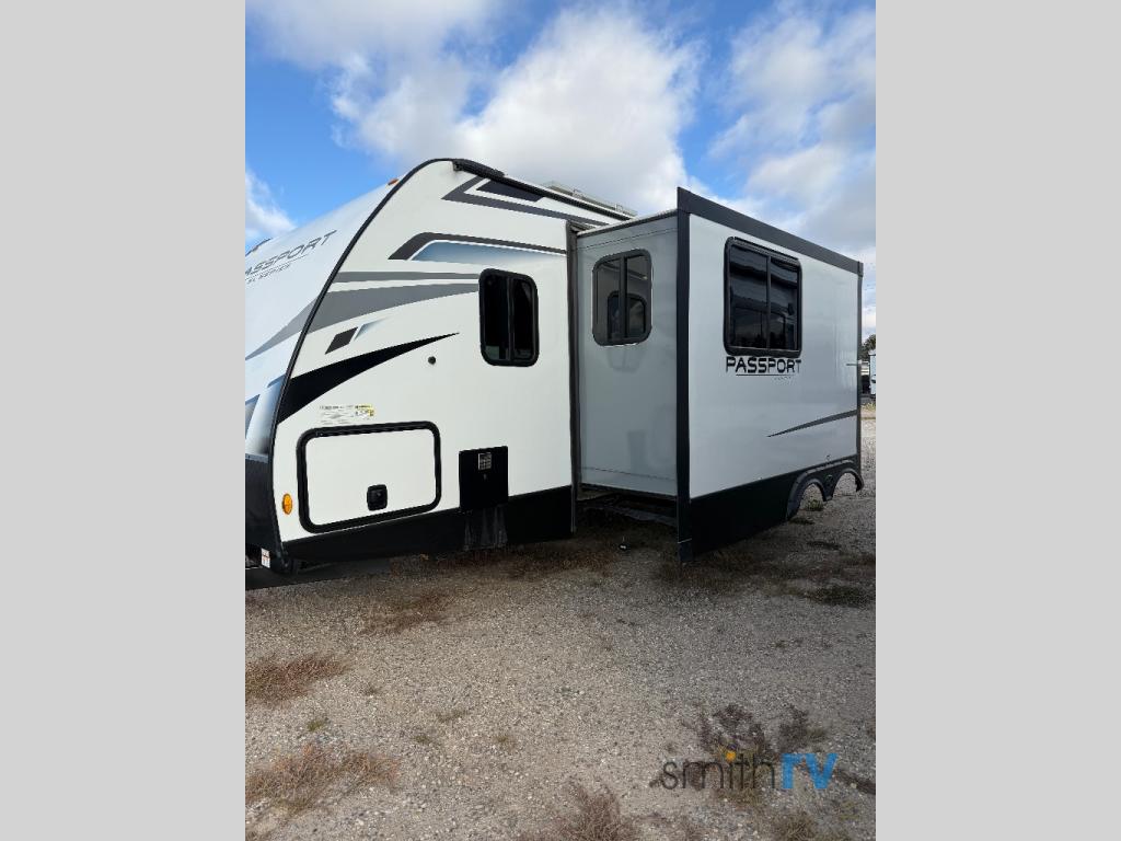 You will be able to take trip after trip with this Passport SL travel trailer! The interior has excellent amenities with its flip-up countertop in the kitchen, privacy curtain in front of the Murphy bed, and U-shaped dinette that can provide an additional sleeping space. There are even 51" x 74" double size bunks that flip up so that you can store gear. When you're outside sitting around the campfire, you can grab some extra roasting sticks from the exterior pass-through storage compartment, and the outdoor kitchen with pull-out cooktop and refrigerator will allow you to prepare something more detailed than s'mores.