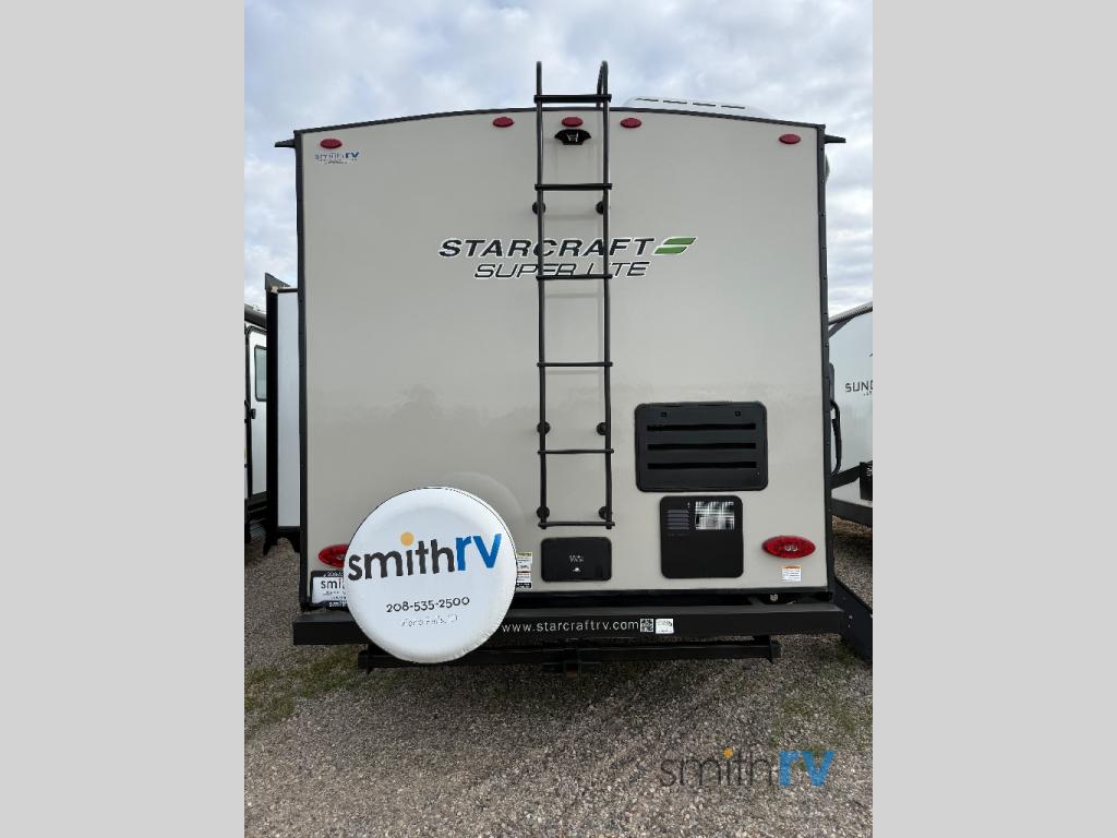With any Starcraft Super Lite travel trailer, the solid and lightweight construction includes a fully walkable roof with a PVC roofing membrane that easily reflects solar heat and UV rays, TuffShell vacuum bonded laminated construction, reinforced with heavy-duty fiberglass and welded aluminum frames, a molded front cap with LED lighting to protect against elements, and a tongue and groove residential floor. The interior is spacious with an 81" living room ceiling height, hardwood cabinet doors, and flush floor slides with residential vinyl flooring and pressed membrane countertops for easy cleanup. Don't wait for your next adventure, take a Super Lite with you today!