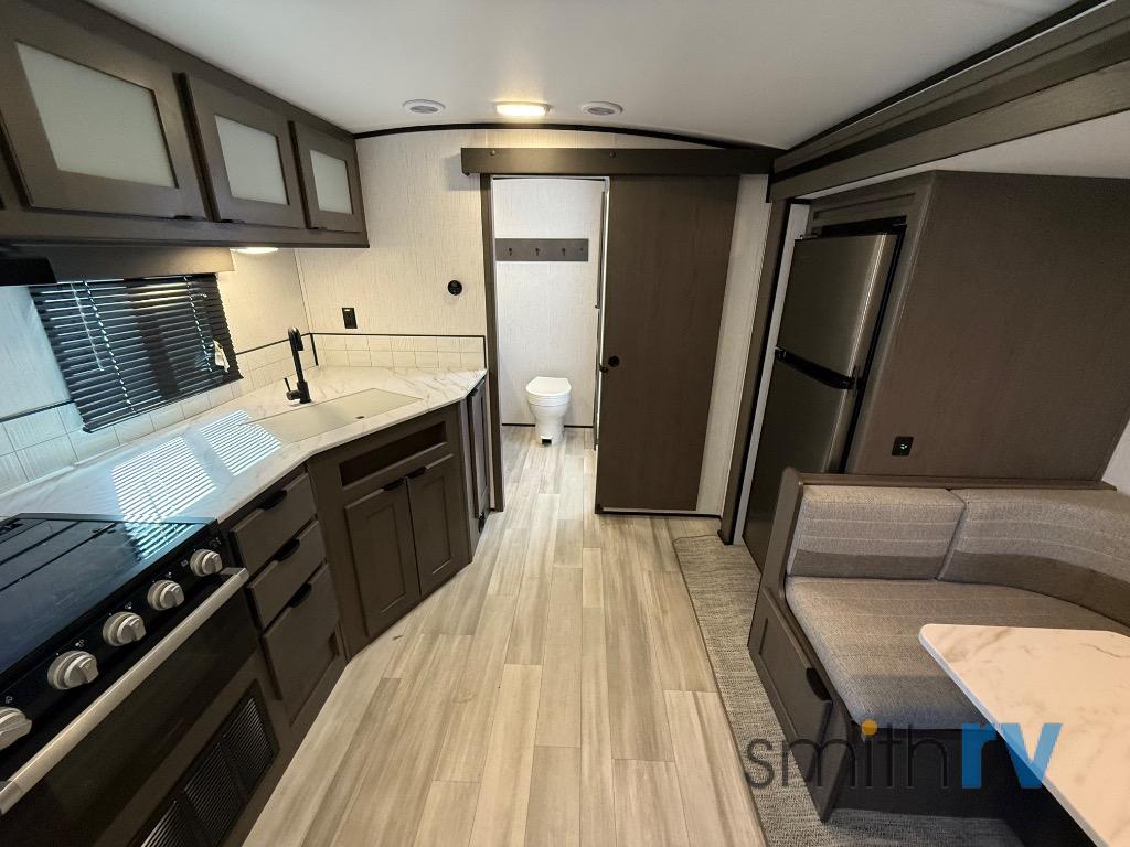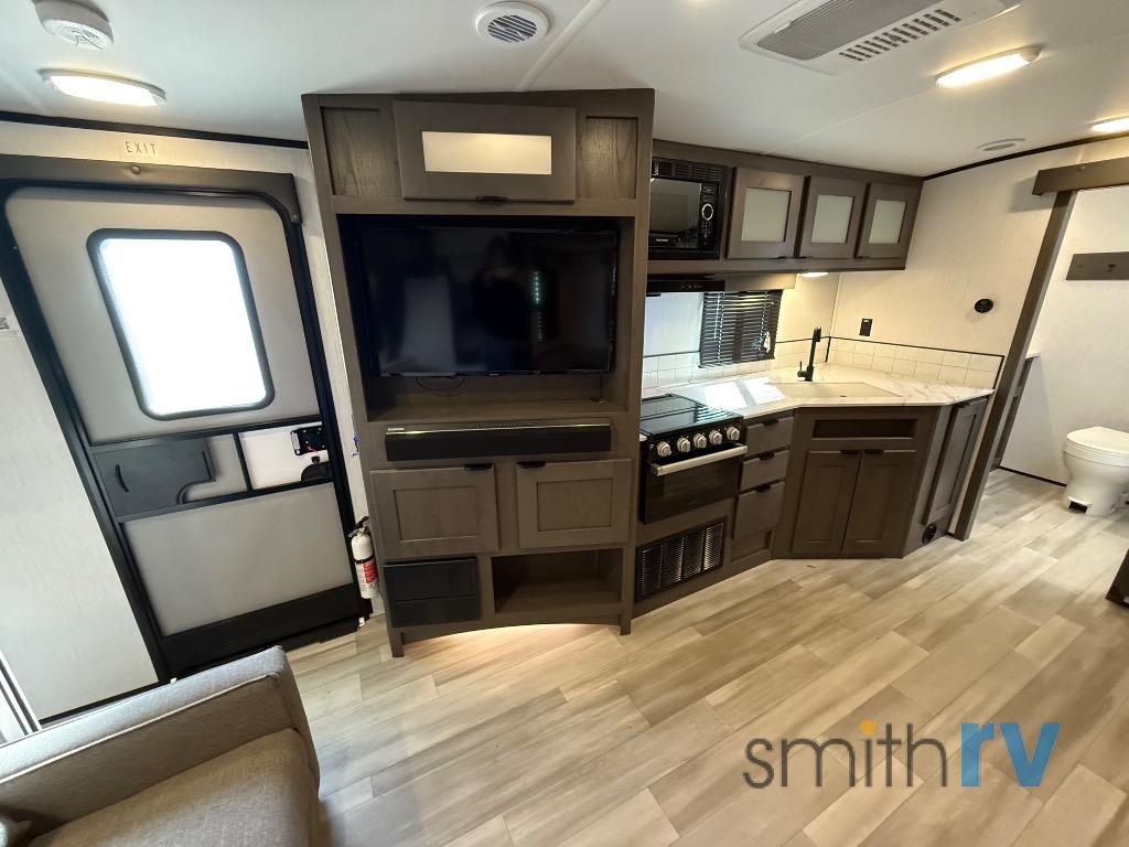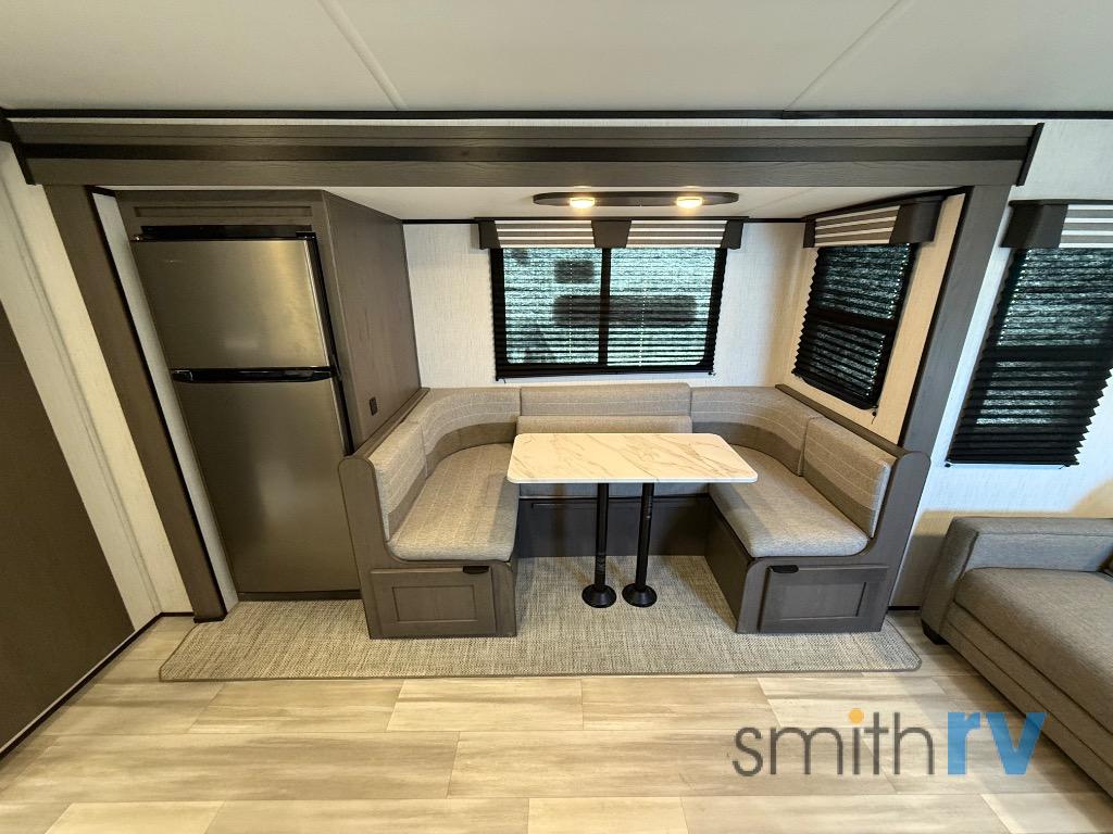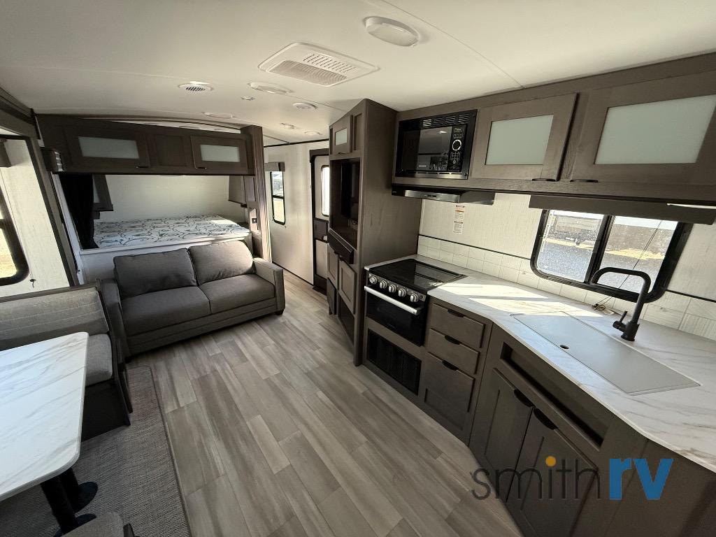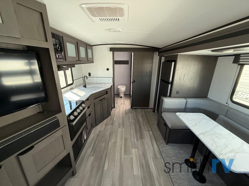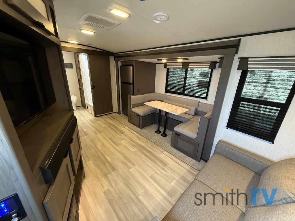 Escape the hustle and bustle of the city life and retreat to the great outdoors in this spacious travel trailer. You will have plenty of space to relax in the main living area thanks to the slide out, and here you'll find a U-shaped dinette. There is also a sofa and an entertainment center where you can add an optional LED TV. There is an outside kitchen to cook breakfast outdoors, plus a full kitchen indoors if the weather isn't cooperating. You are sure to love the full rear bath that includes dual bath sinks, a spacious shower, plus a linen closet to store clean towels!