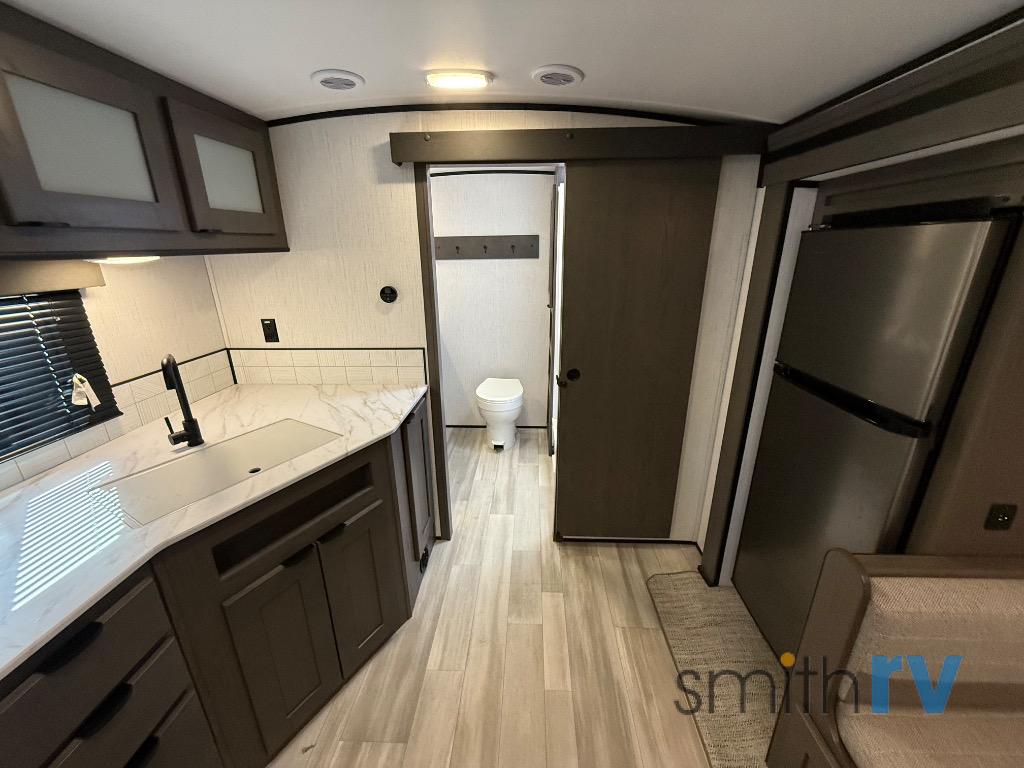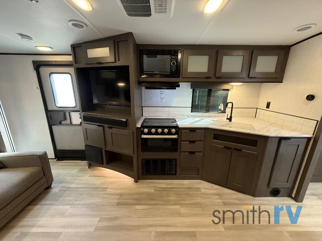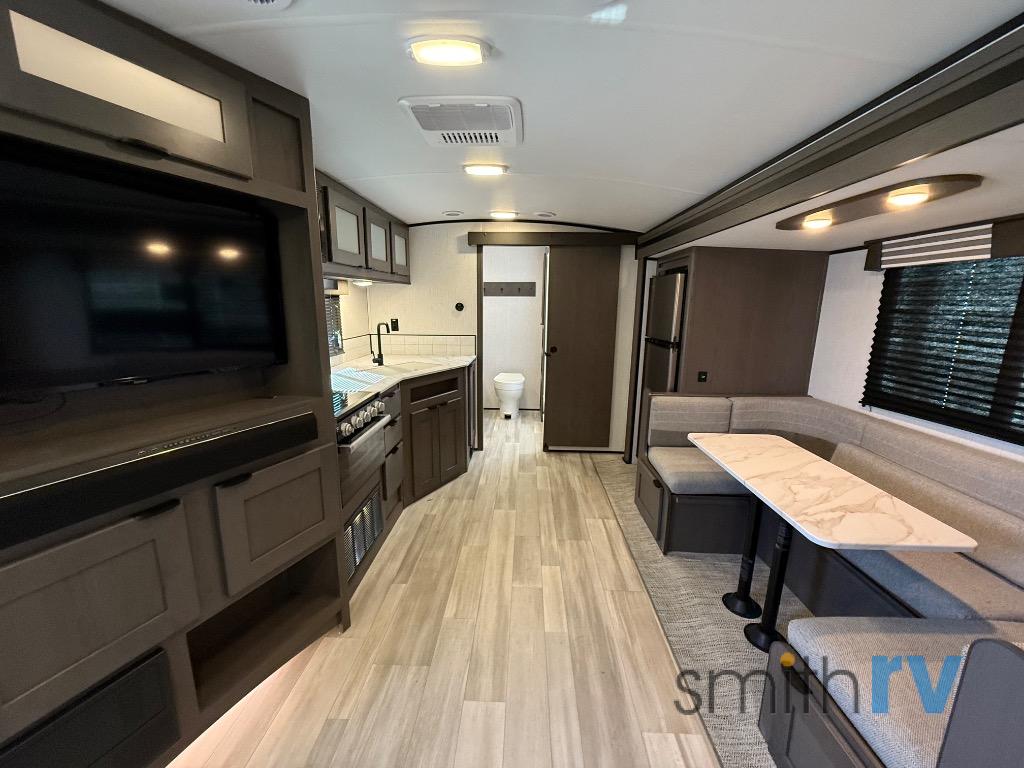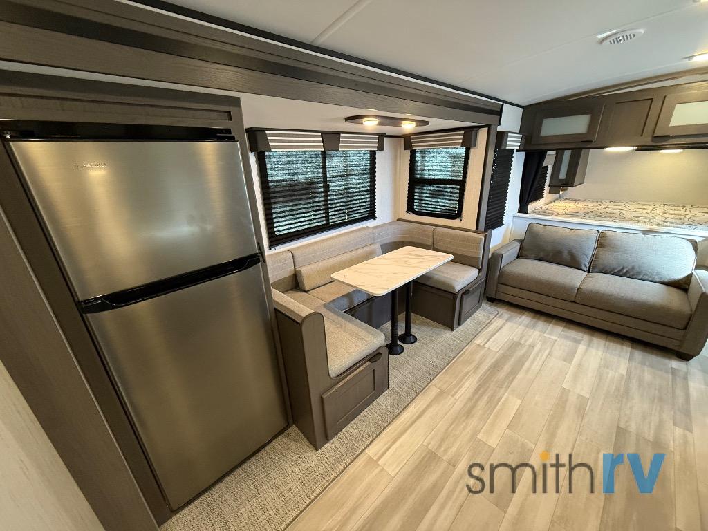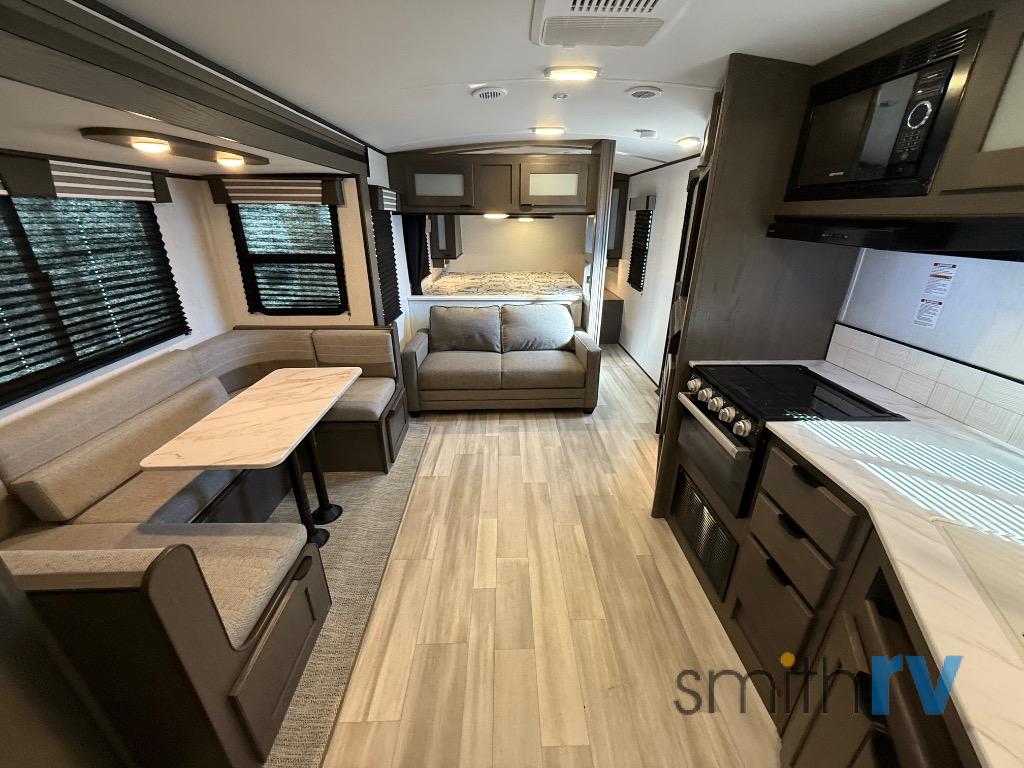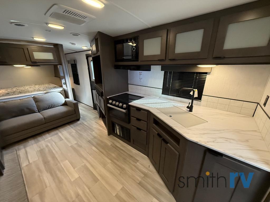 Escape the hustle and bustle of the city life and retreat to the great outdoors in this spacious travel trailer. You will have plenty of space to relax in the main living area thanks to the slide out, and here you'll find a U-shaped dinette. There is also a sofa and an entertainment center where you can add an optional LED TV. There is an outside kitchen to cook breakfast outdoors, plus a full kitchen indoors if the weather isn't cooperating. You are sure to love the full rear bath that includes dual bath sinks, a spacious shower, plus a linen closet to store clean towels!