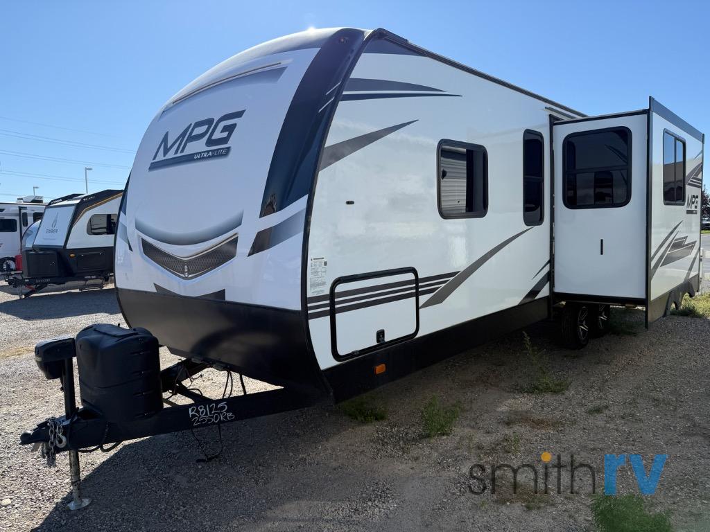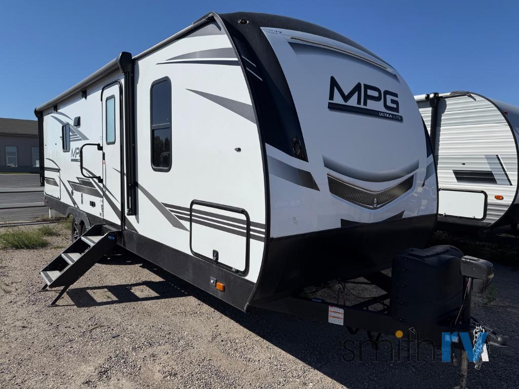 With any MPG travel trailer or toy hauler by Cruiser you will find a 6' 11" barrel roof, Azdel composite laminated walls, and a two-tone fiberglass front cap with LED lighting for a sleek look. There are seamless kitchen countertops and plywood flooring that will be easy to clean, plus residential hardwood cabinets with hidden hinges for a more at-home feel. The slam latch baggage doors with magnetic latches will make loading up easier than ever, plus the full belly storage system includes LED lights you are sure to appreciate. Each model also includes multiple charging stations with 12v and USB ports, a four speaker soundbar system to listen to your playlists, and a dual ducted BTU A/C to keep you cool during those hot summer months!