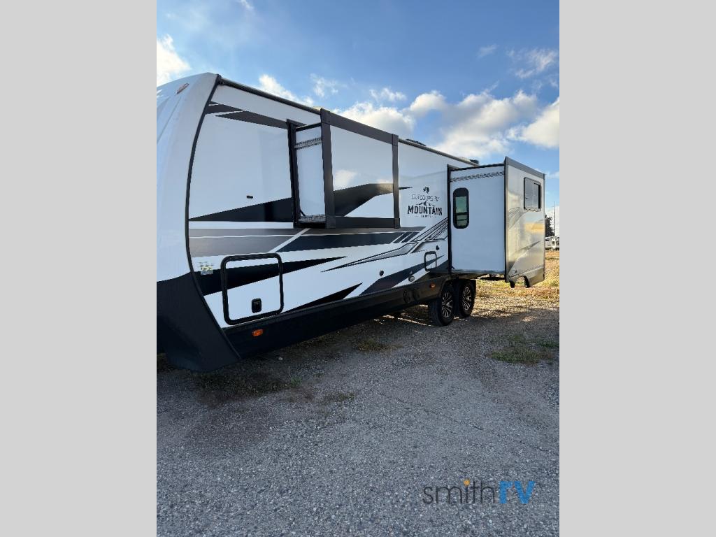 This dual entry travel trailer will be perfect for your trips to the mountains. The rear mountain dinette includes a large window for outdoor views, and you'll find additional seating space on the sleeper sofa. The chef of your group can work up their magic in the full kitchen that includes a sunken range and a flip-up counter for more counter space. Within the front private bedroom you'll find a queen bed, wardrobes on either side of the bed, plus a wardrobe slide for more space and storage.